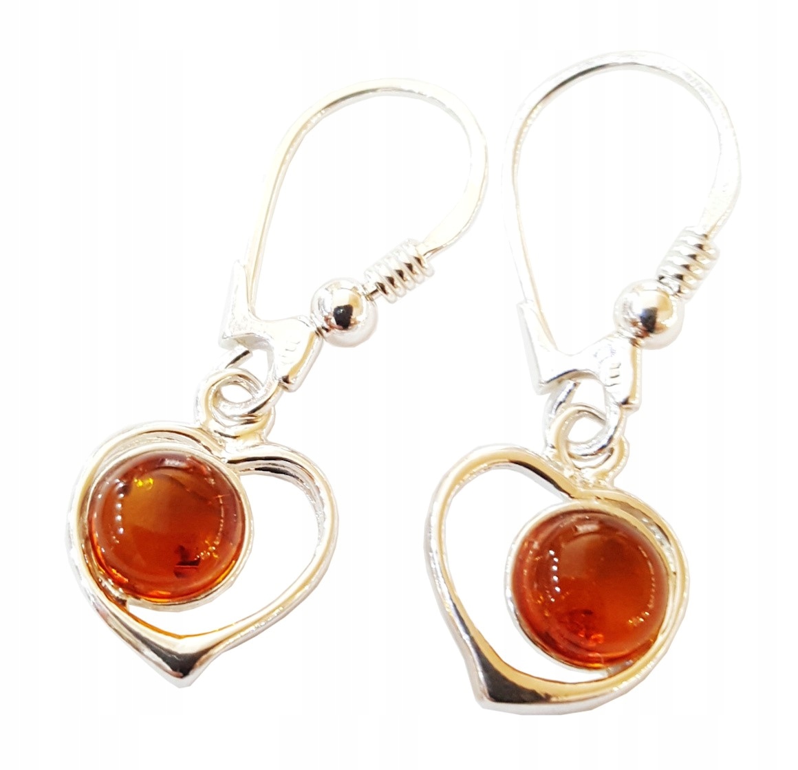 KOLCZYKI SREBRNE 925 z prawdziwym BURSZTYNEM. Klasyka i oryginalność
