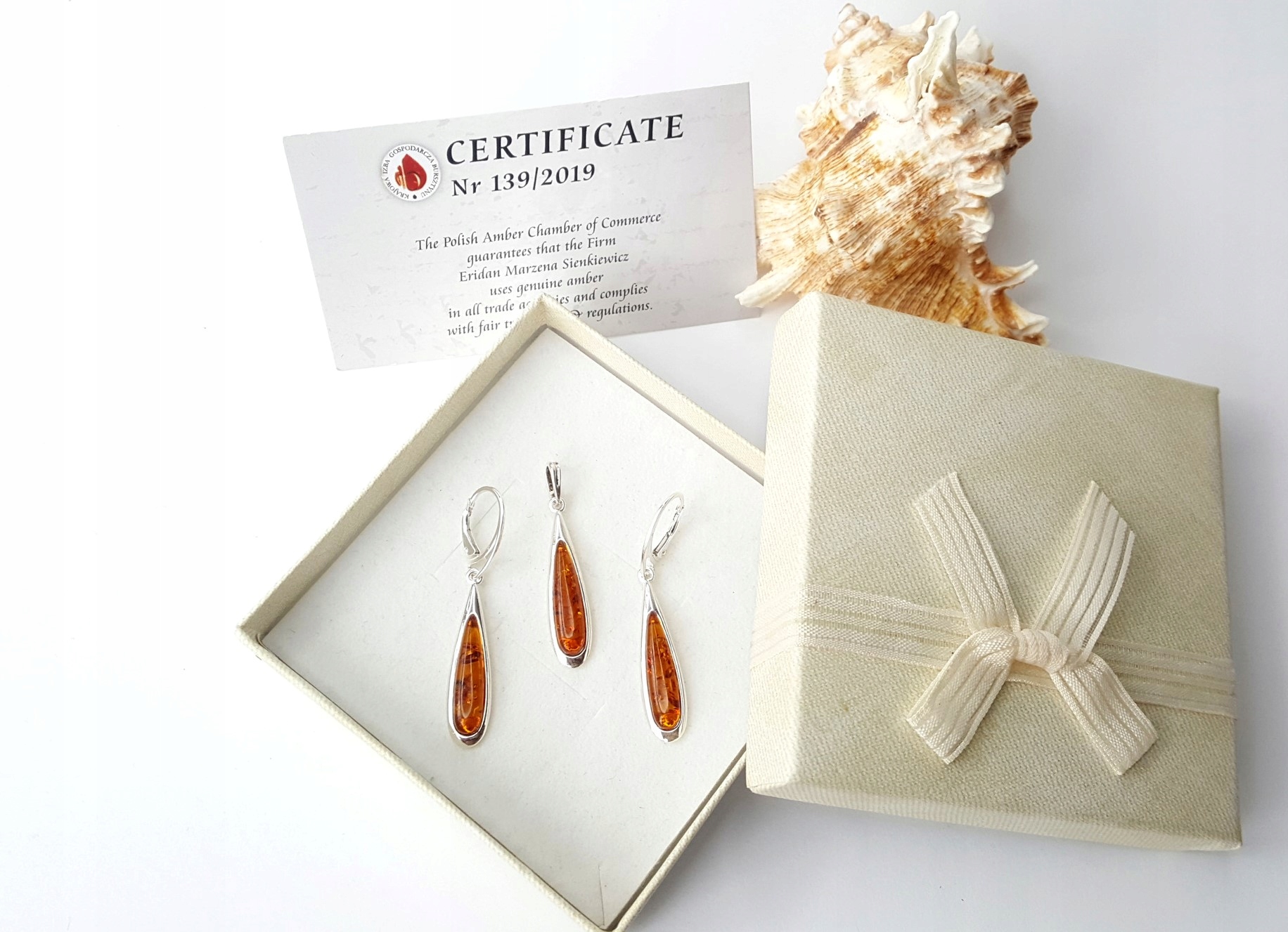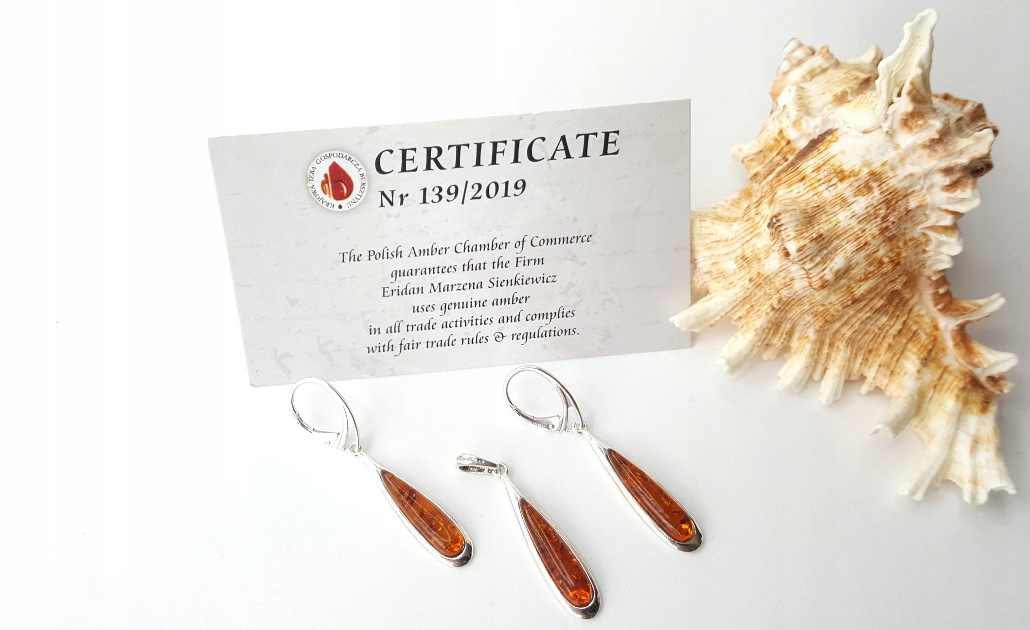 *** Naturalny i prawdziwy BURSZTYN *** SREBRO 925 *** CERTYFIKAT AUTENTYCZNOŚCI ***