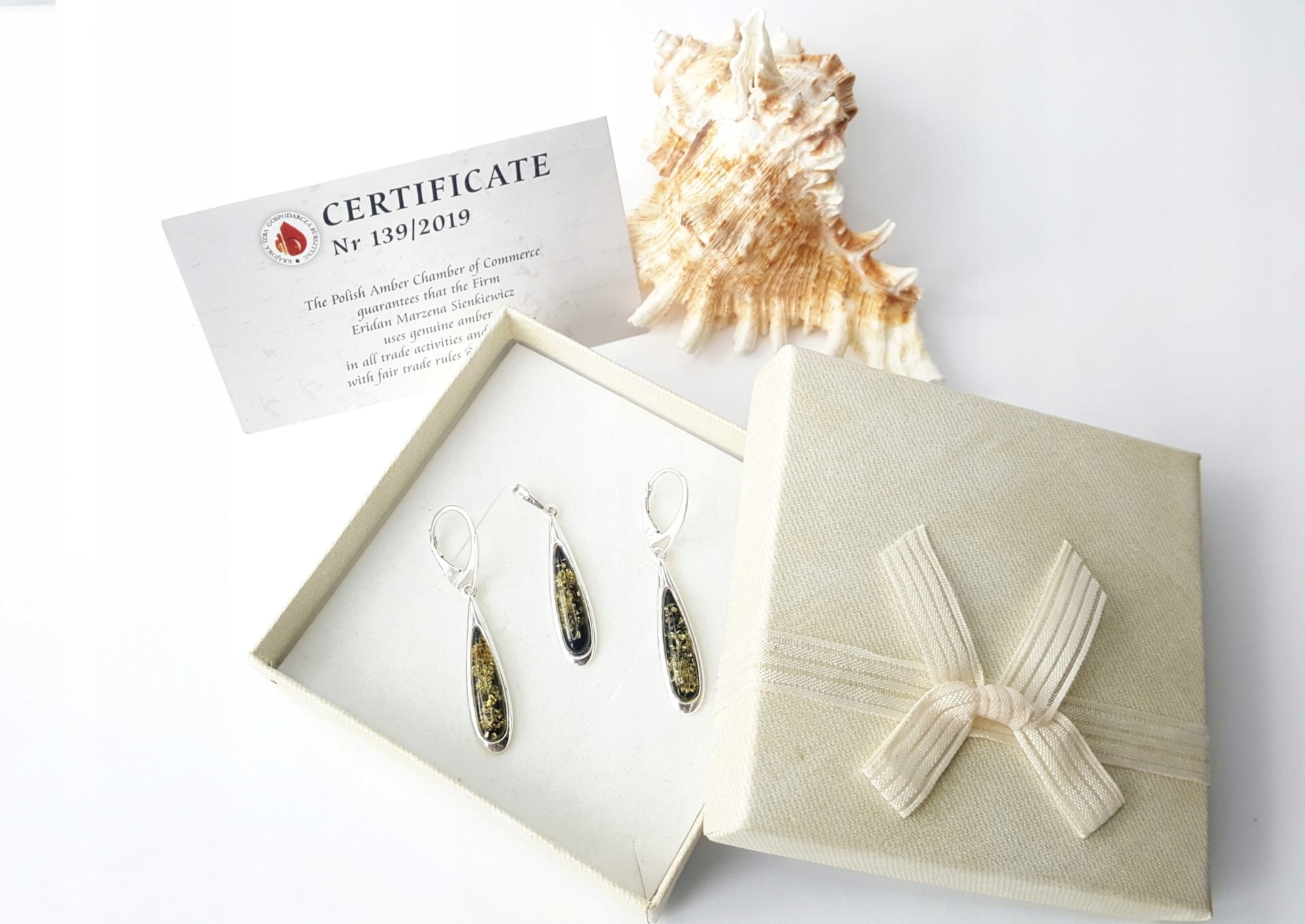 Kupując Nasz komplet srebrnych kolczyków i zawieszki z bursztynem możecie być Państwo pewni, że zostanie on zapakowany w bardzo ładne pudełko jubilerskie. Zupełnie za darmo. Pudełka wybieramy losowo, zawsze kierując się tym, aby idealnie pasowały do wybranego przez Państwa zestawu.