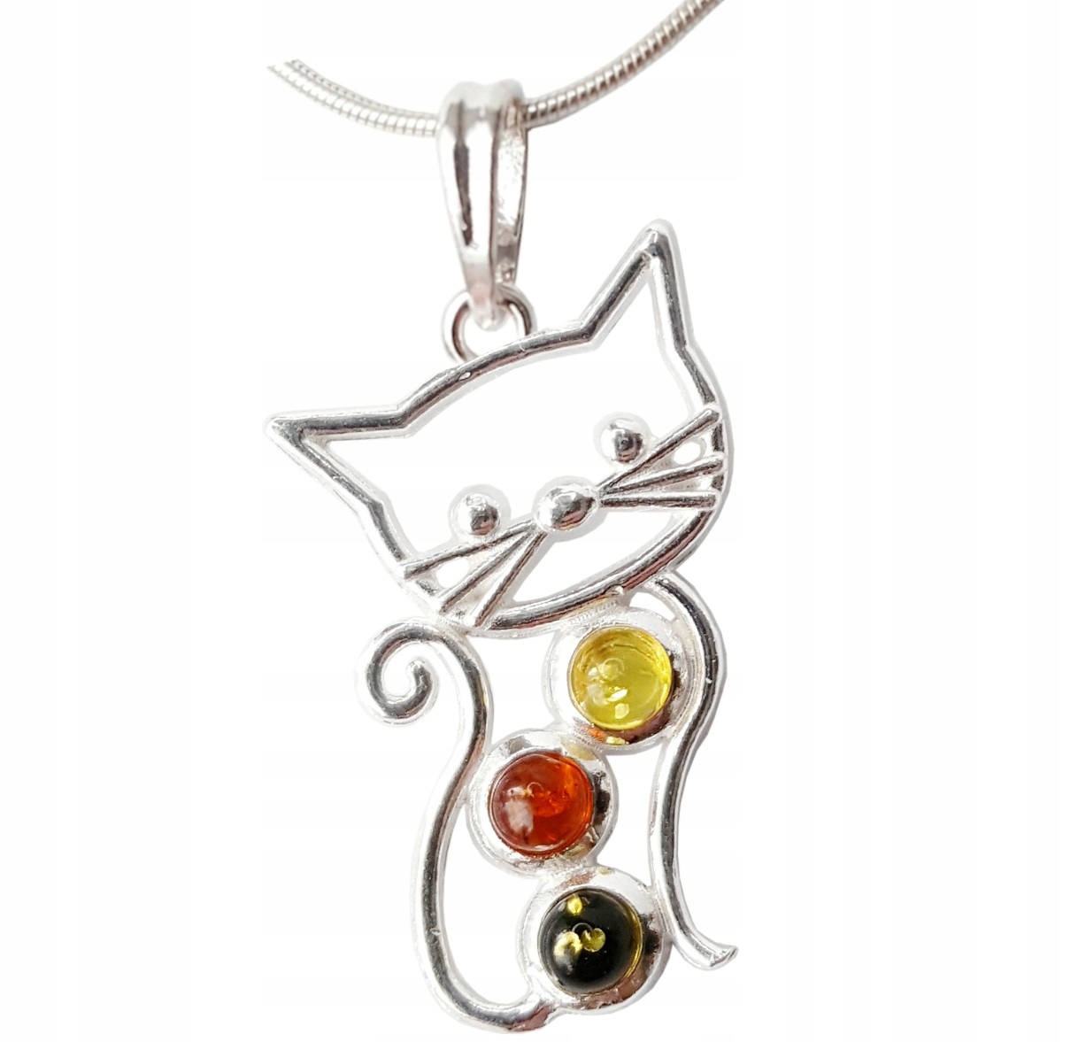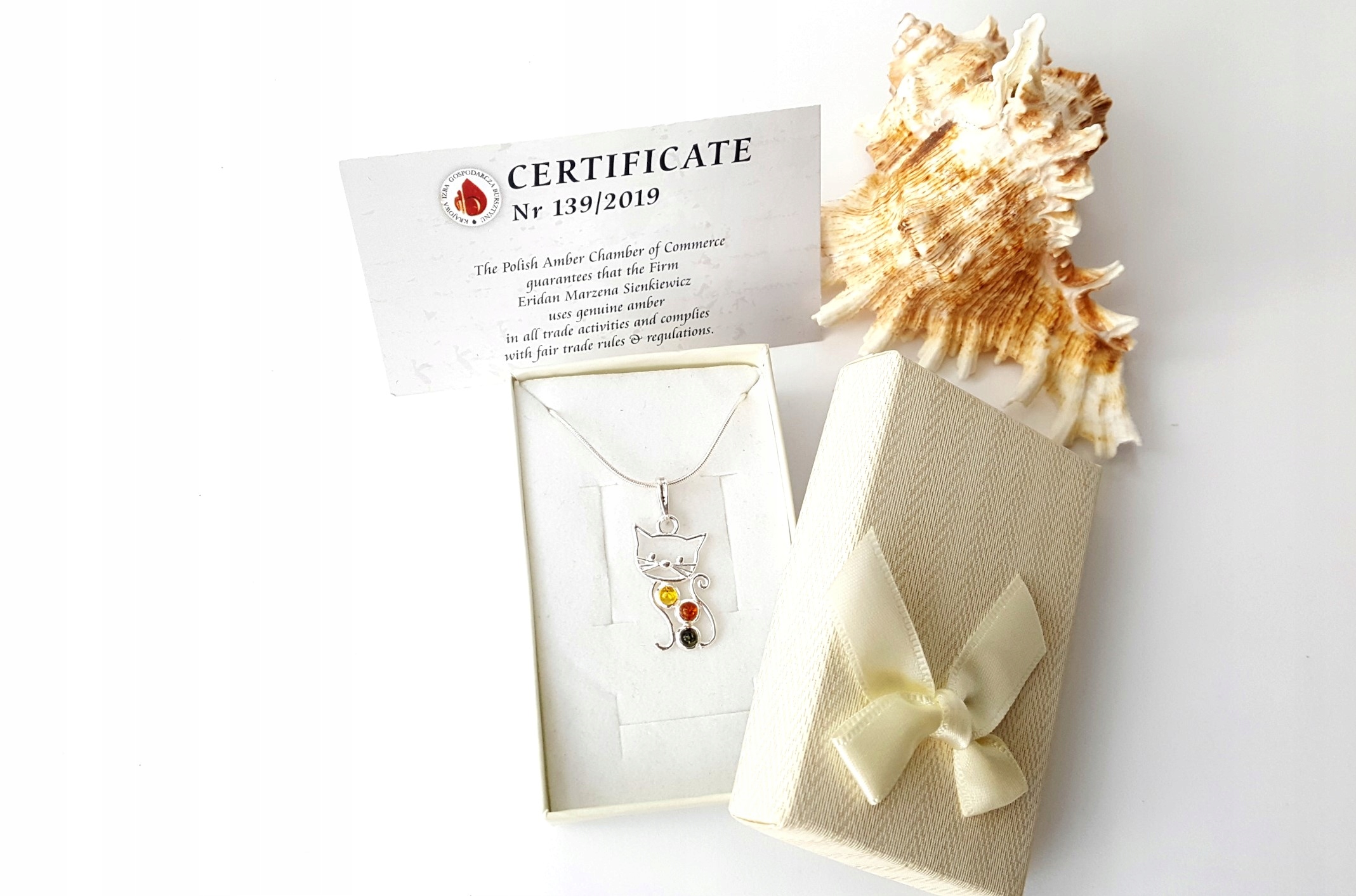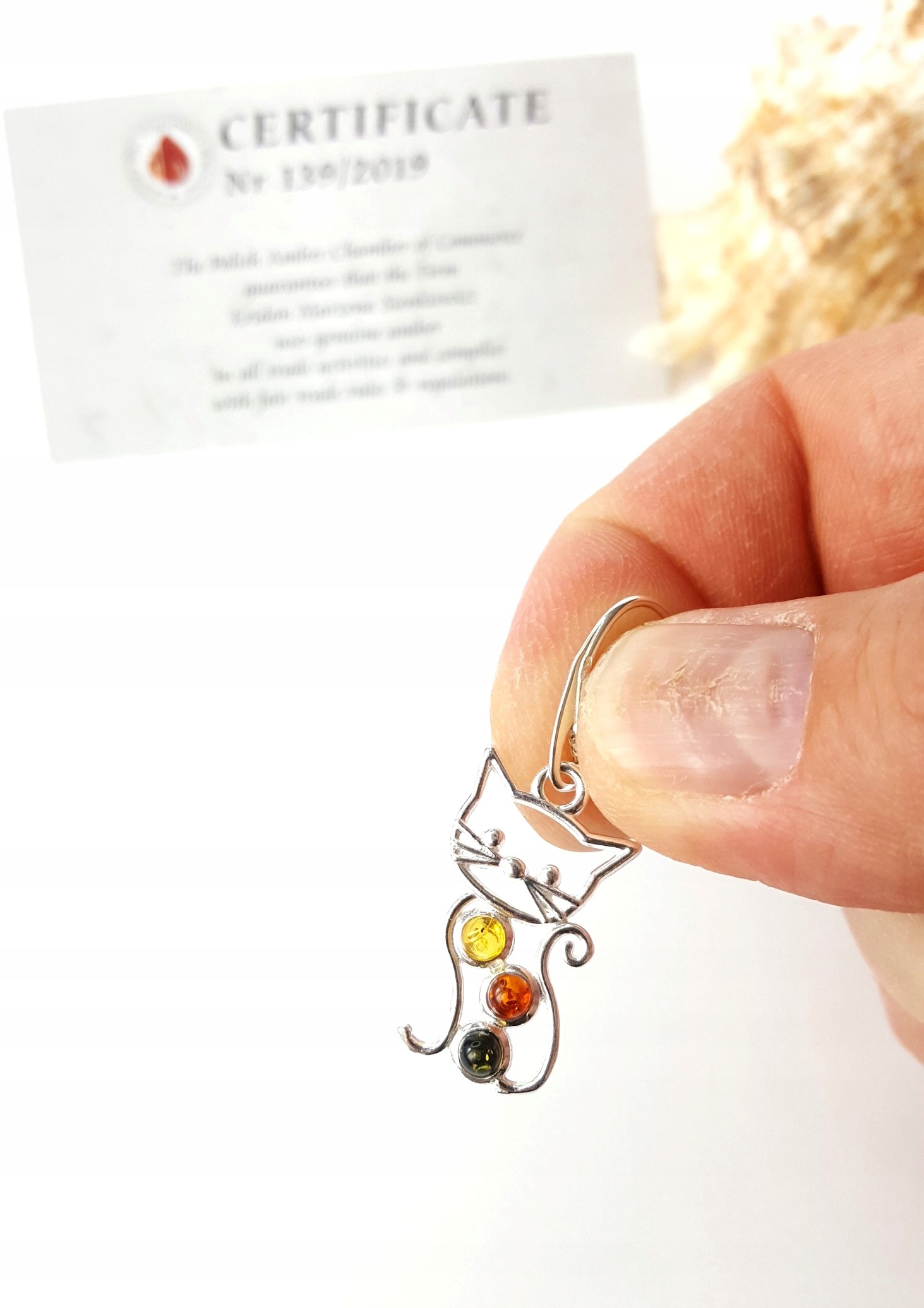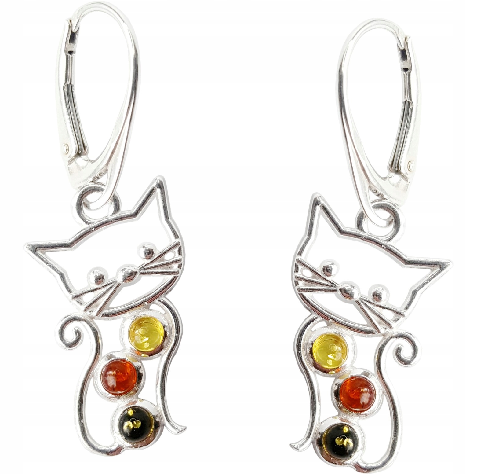KOLCZYKI srebrne KOTKI z BURSZTYNEM prezent CERTYF
