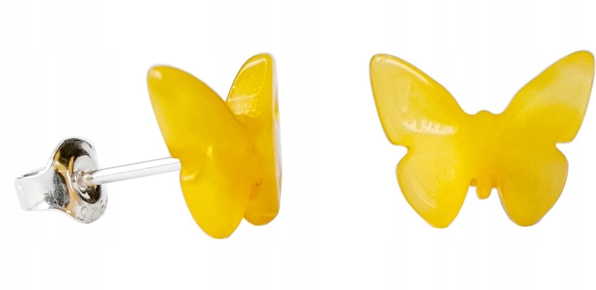 Oferujemy Państwu sztyftowe, wyjątkowe i delikatne kolczyki srebrne pr. 925 z żółtym bursztynem.