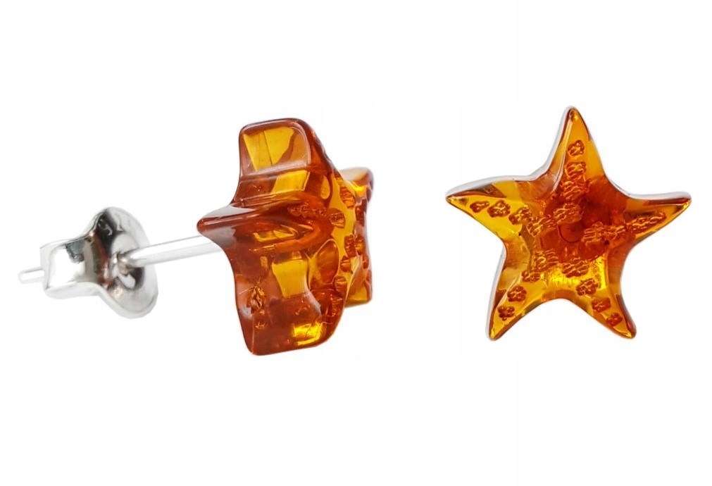 *** sztyfty – KOLCZYKI SREBRNE z prawdziwym BURSZTYNEM ***