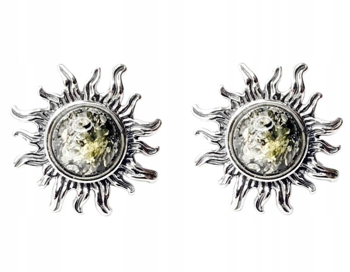 Oferujemy Państwu sztyftowe, wyjątkowe kolczyki srebrne pr. 925 z zielonym bursztynem.