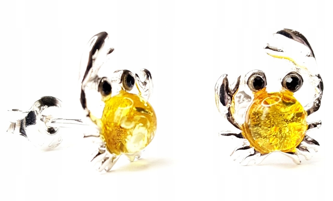 KOLCZYKI srebrne SZTYFTY małe KRABY z cytrynowym BURSZTYNEM