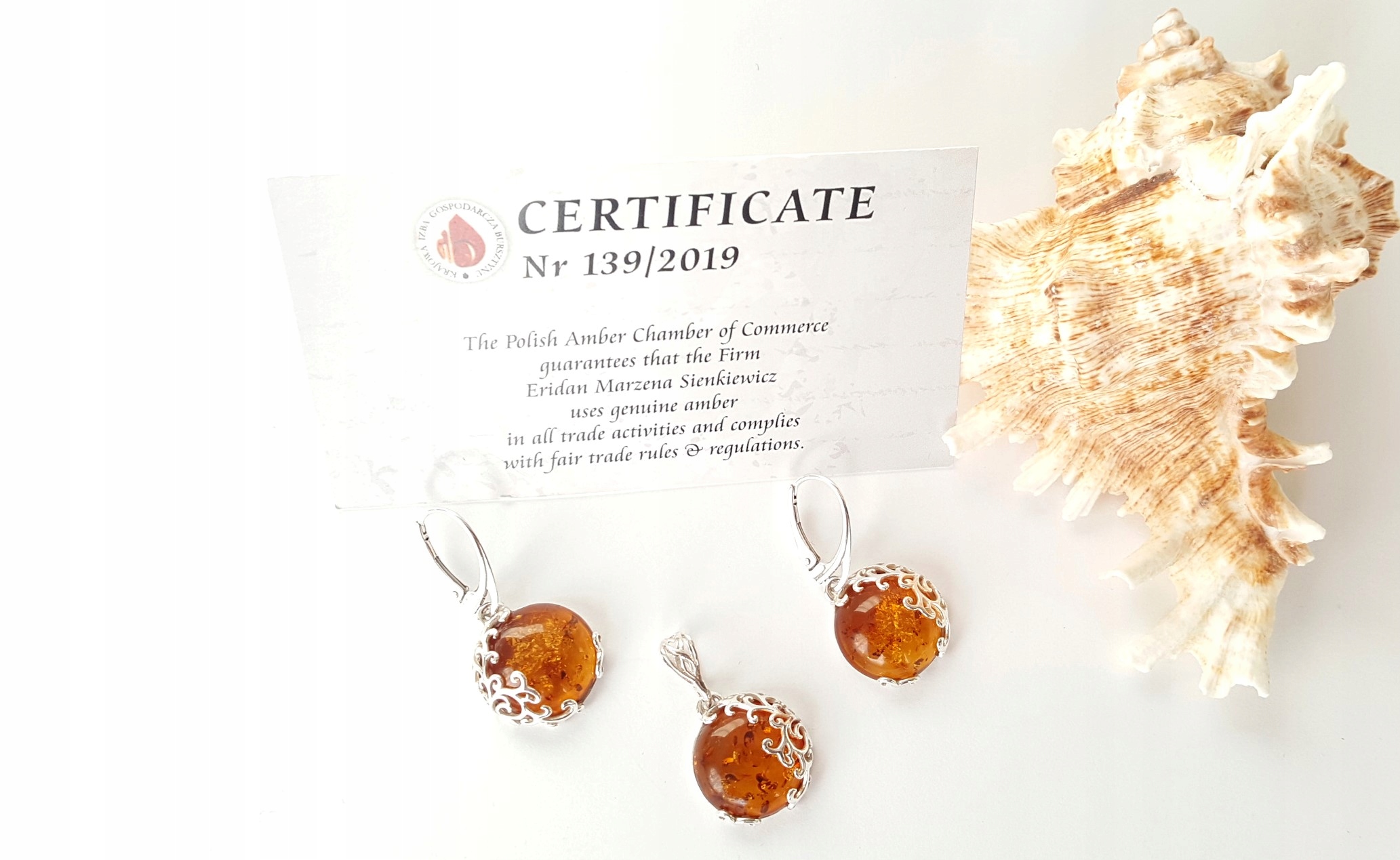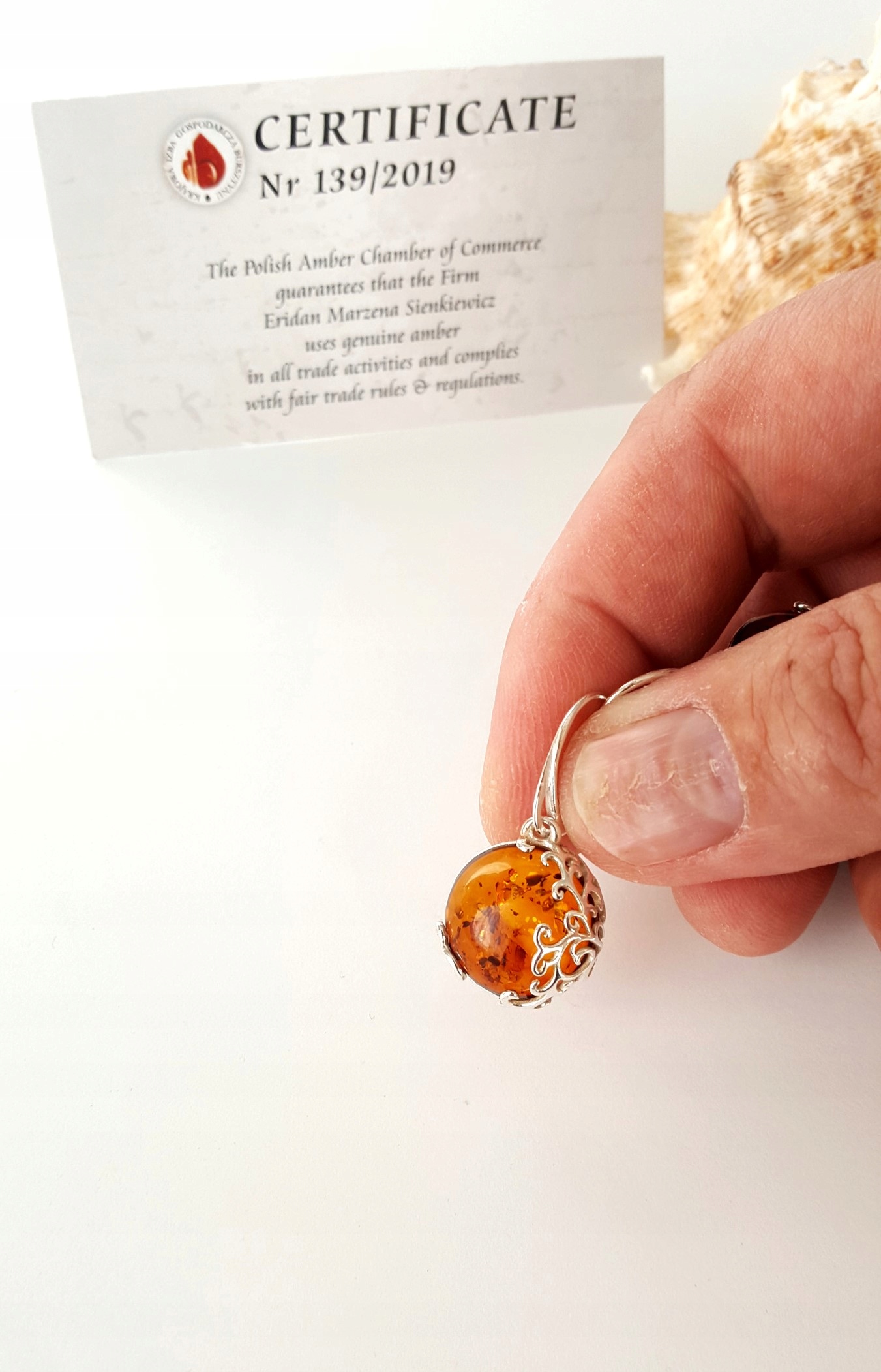 *** Naturalny i prawdziwy BURSZTYN *** SREBRO 925 *** CERTYFIKAT AUTENTYCZNOŚCI ***