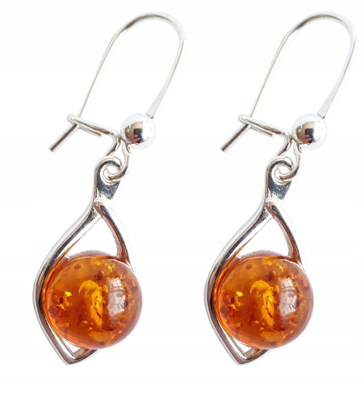 Eleganckie KOLCZYKI SREBRNE pr. 925 z BURSZTYNEM. Klasyka i oryginalność.