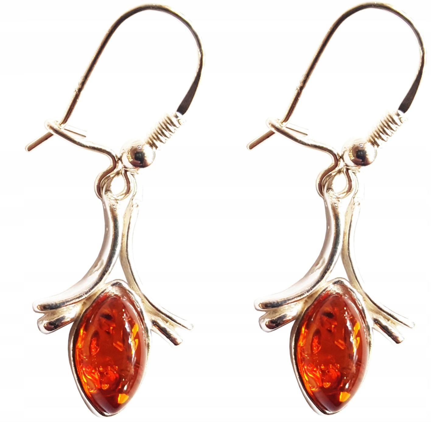 Eleganckie KOLCZYKI SREBRNE pr. 925 z BURSZTYNEM. Klasyka i oryginalność.