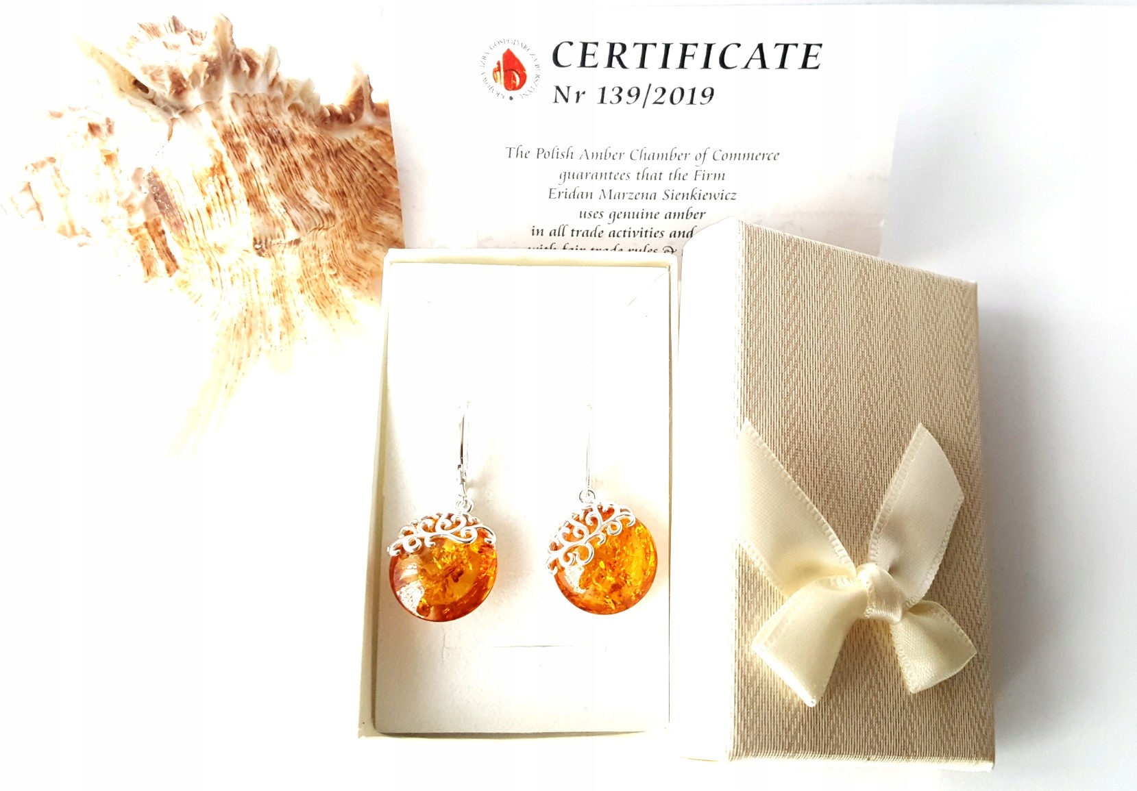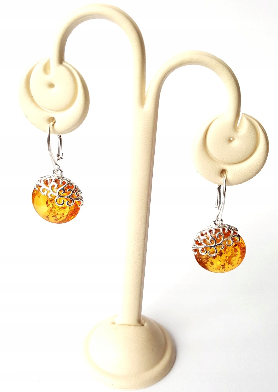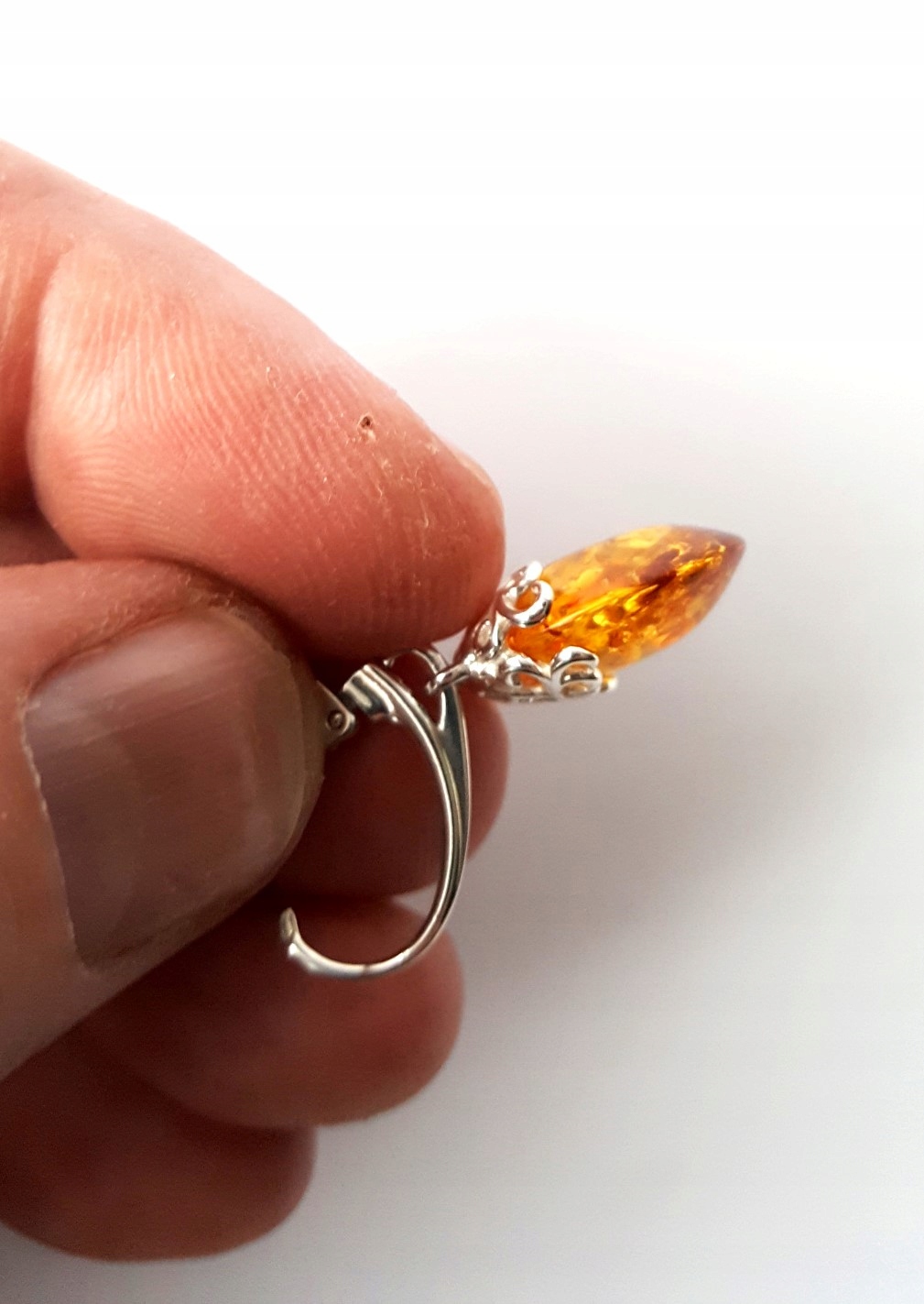 Eleganckie KOLCZYKI SREBRNE pr. 925 z BURSZTYNEM. Klasyka i oryginalność.
