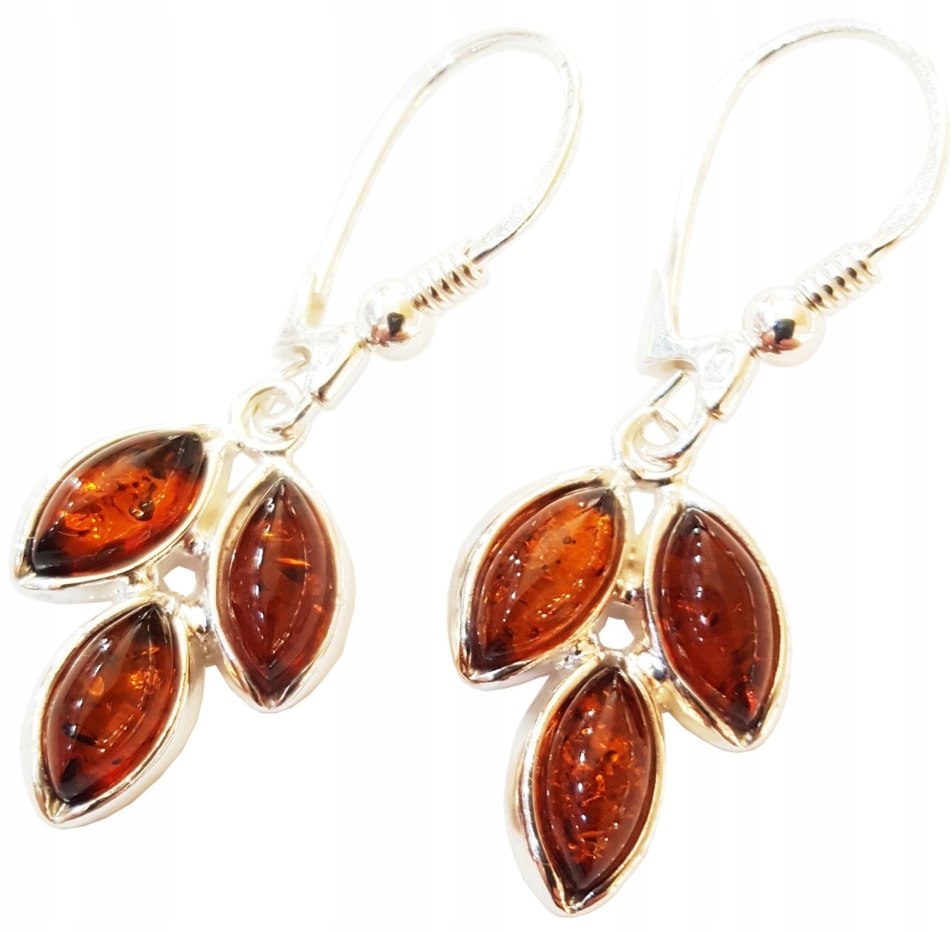 *** Eleganckie KOLCZYKI SREBRNE 925 z prawdziwym BURSZTYNEM ***