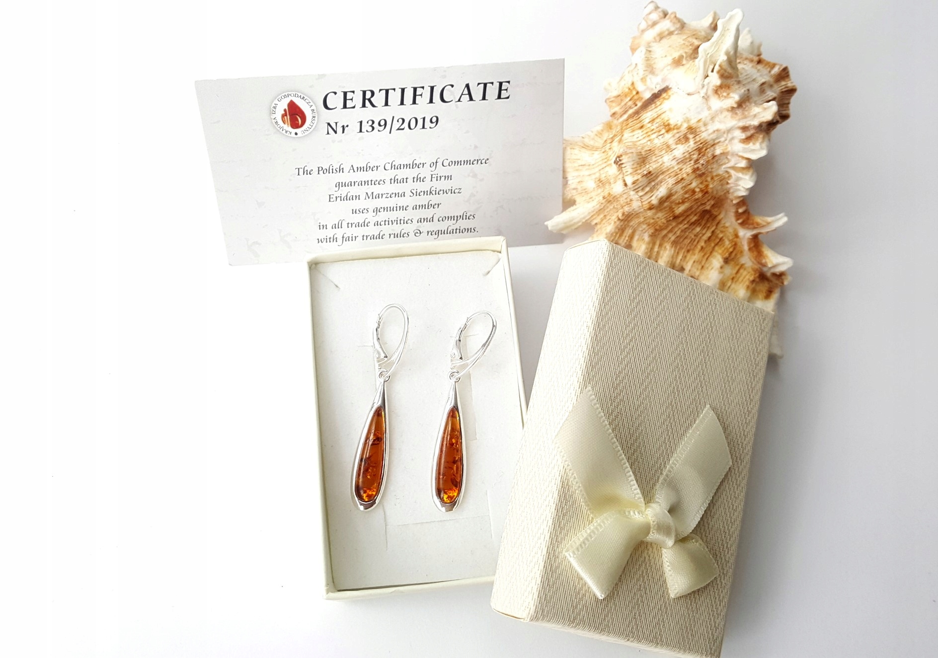 KOLCZYKI srebrne z BURSZTYNEM długie NA PREZENT