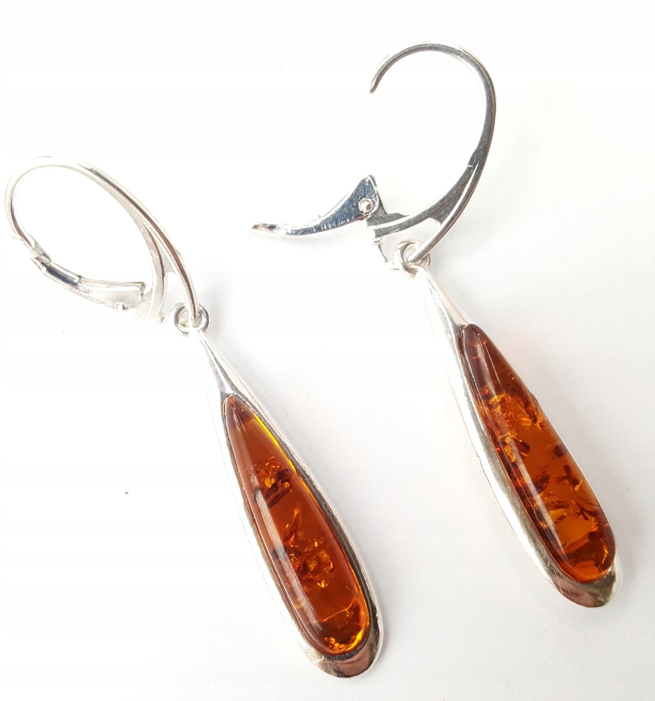 *** KOLCZYKI SREBRNE z prawdziwym BURSZTYNEM ***
