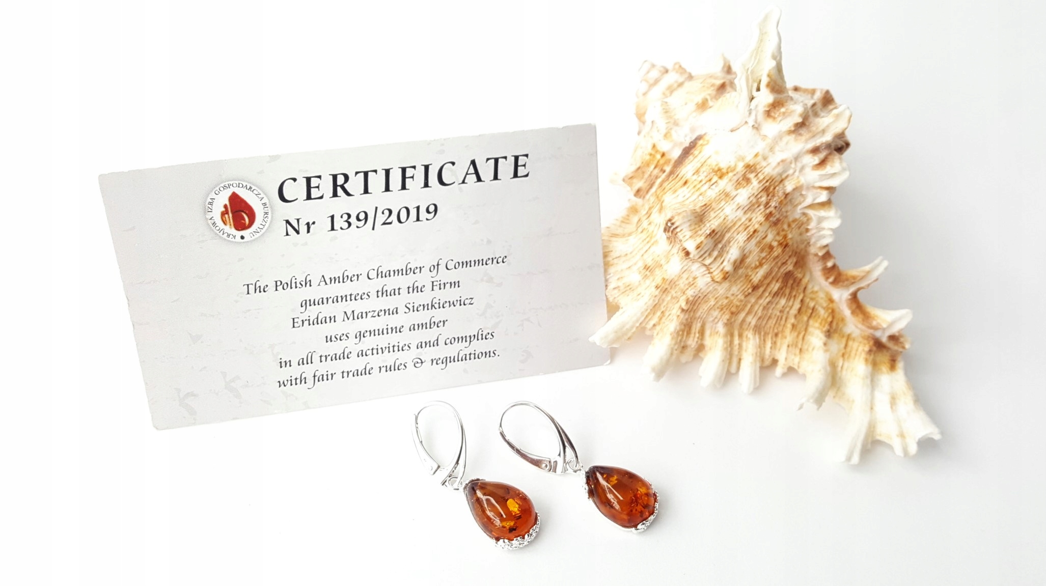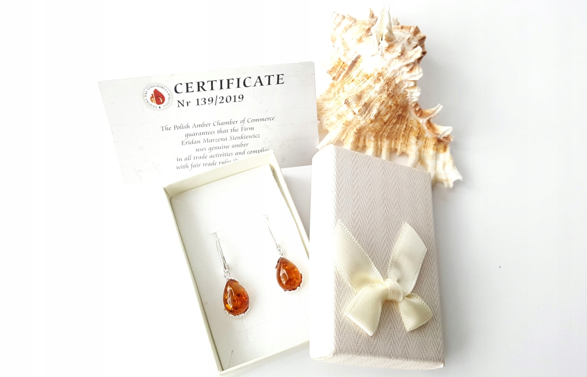 KOLCZYKI srebrne z BURSZTYNEM idealne na PREZENT + CERTYFIKAT