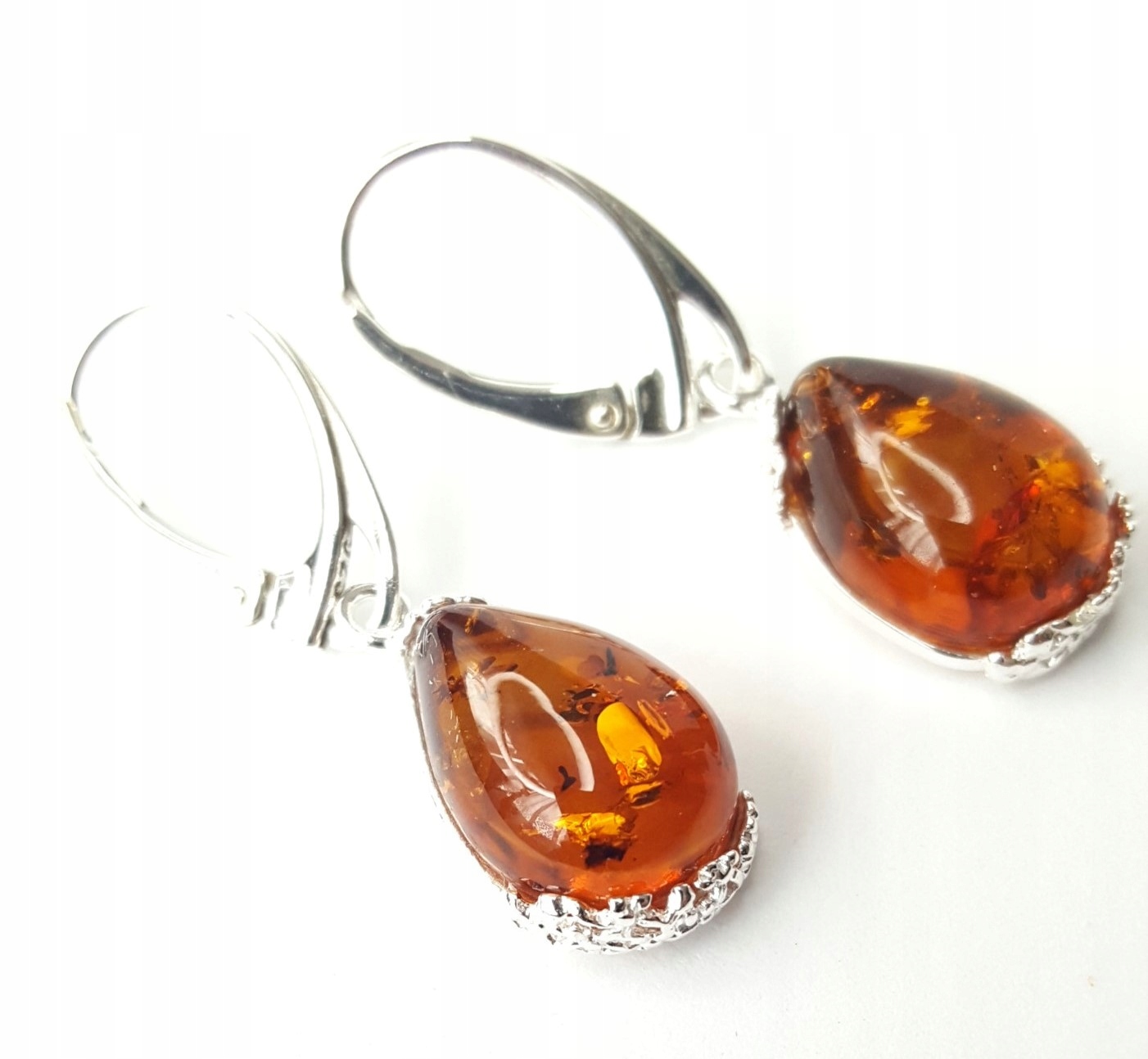 *** KOLCZYKI SREBRNE z prawdziwym BURSZTYNEM ***