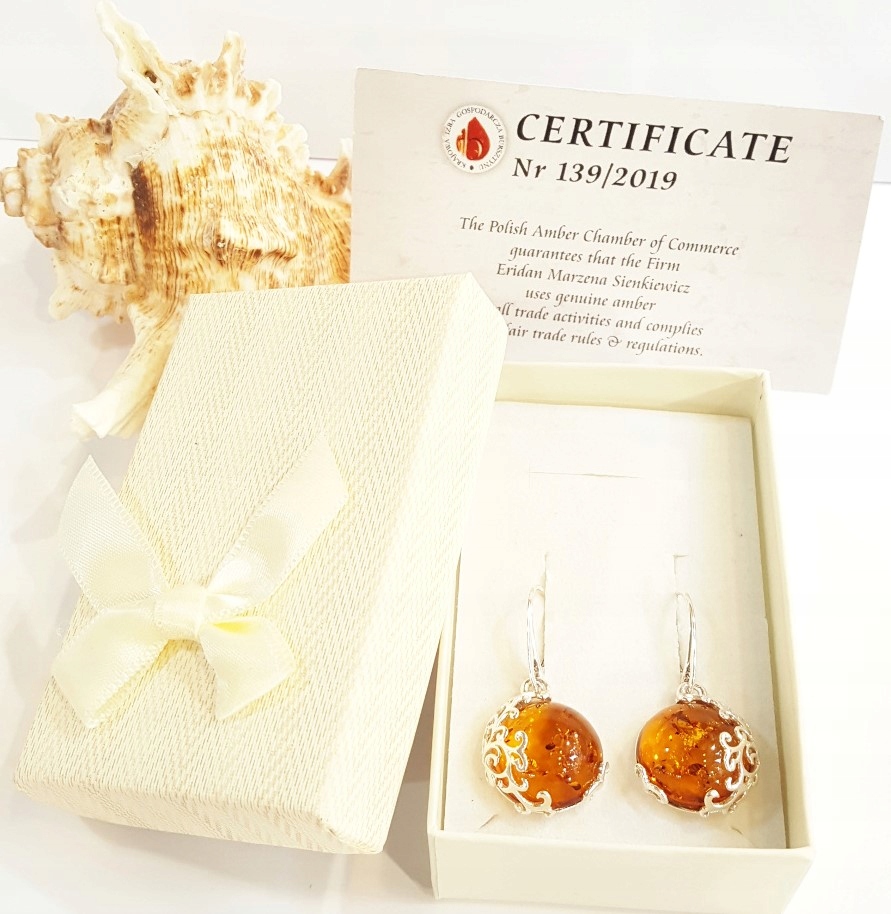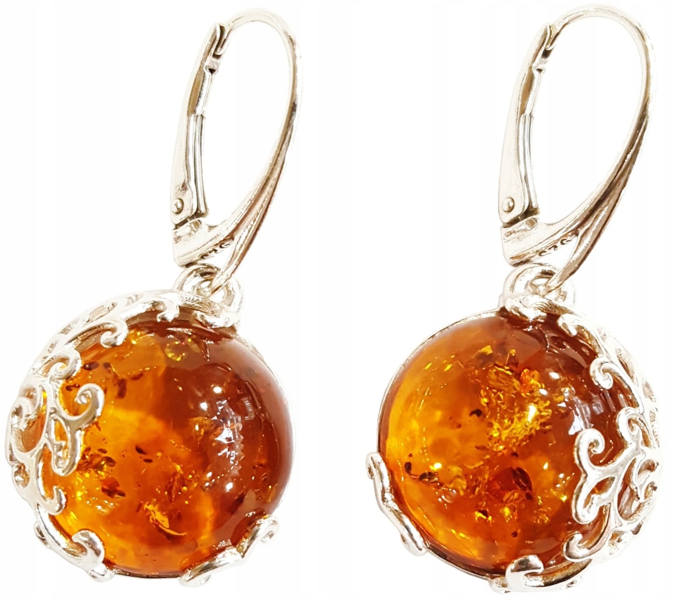 *** KOLCZYKI SREBRNE z prawdziwym BURSZTYNEM ***