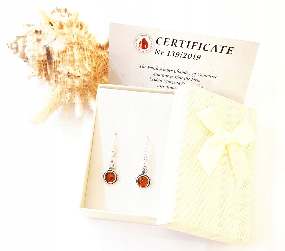 Prawdziwy BURSZTYN, SREBRO pr. 925, CERTYFIKAT Autentyczności