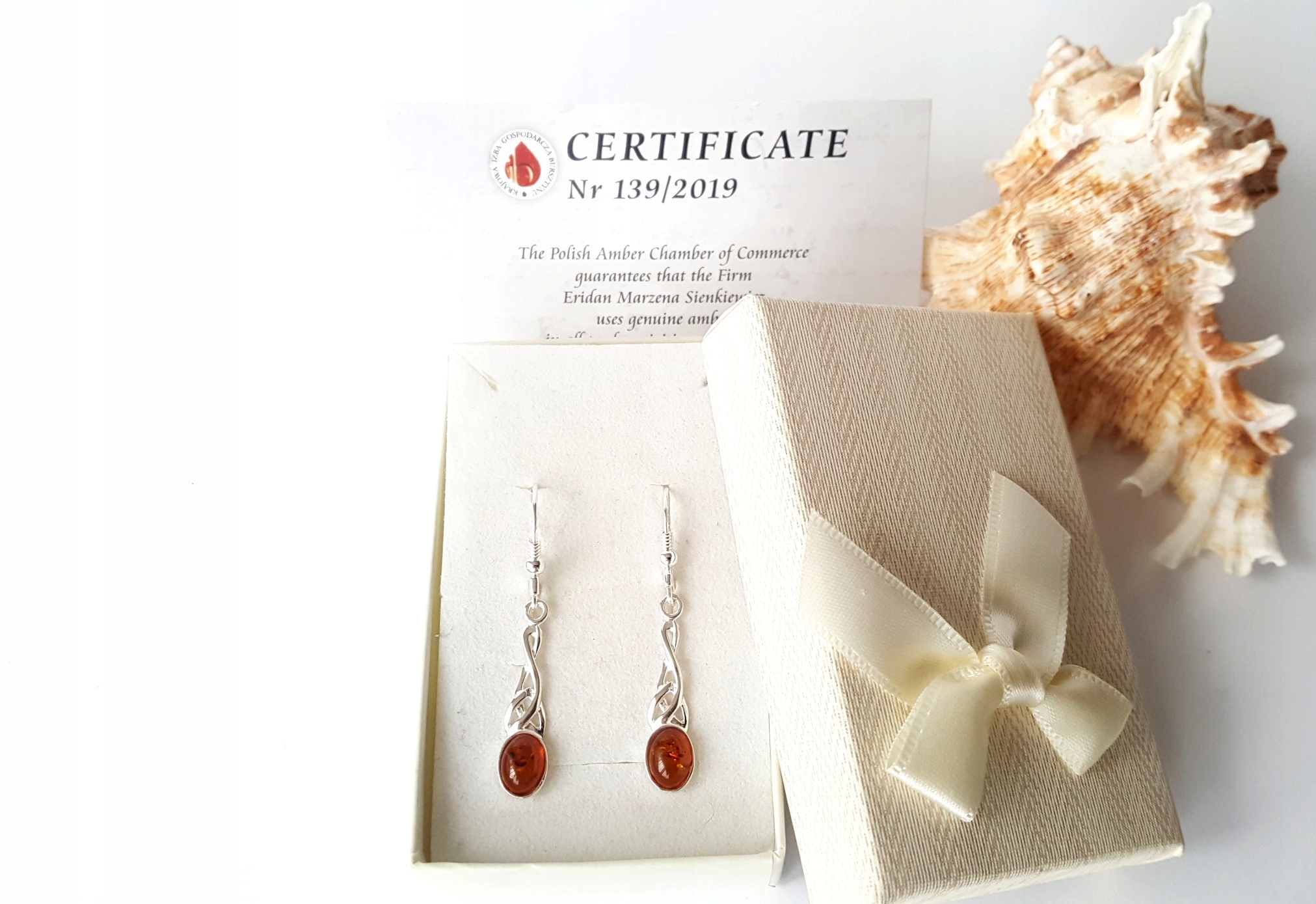Prawdziwy BURSZTYN, SREBRO pr. 925, CERTYFIKAT Autentyczności