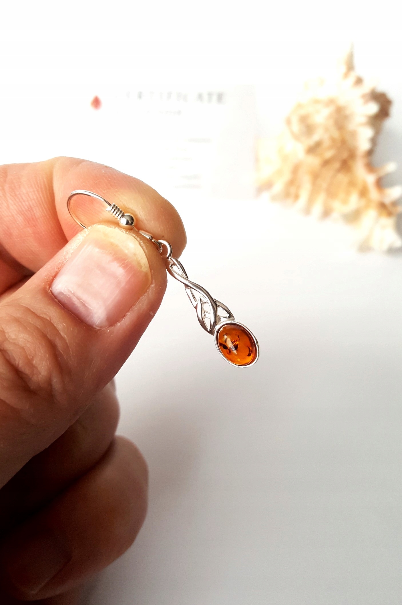 KOLCZYKI SREBRNE z BURSZTYNEM na PREZENT +CERTYF.