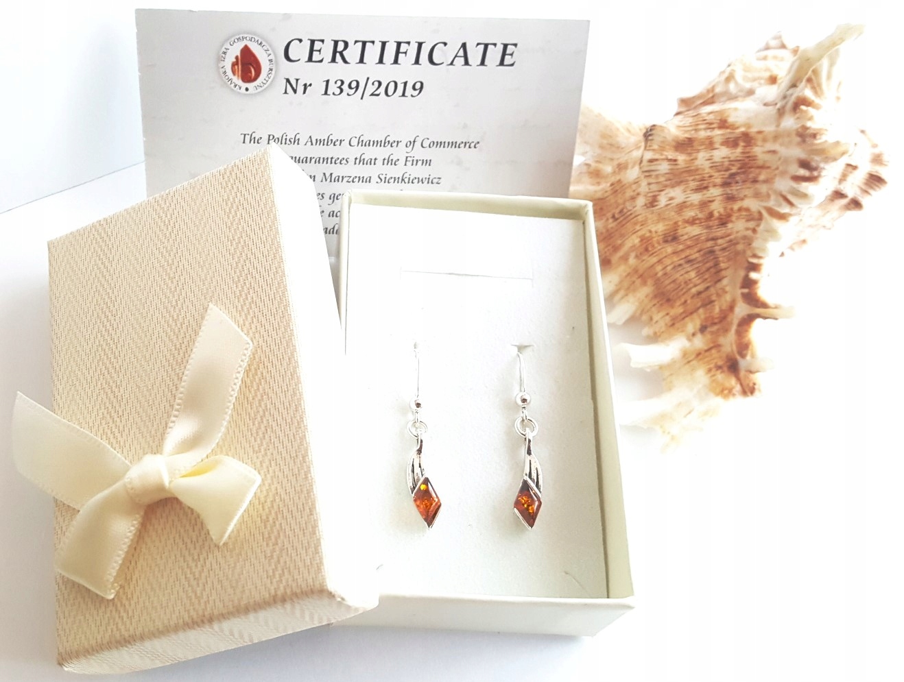 Prawdziwy BURSZTYN, SREBRO pr. 925, CERTYFIKAT Autentyczności