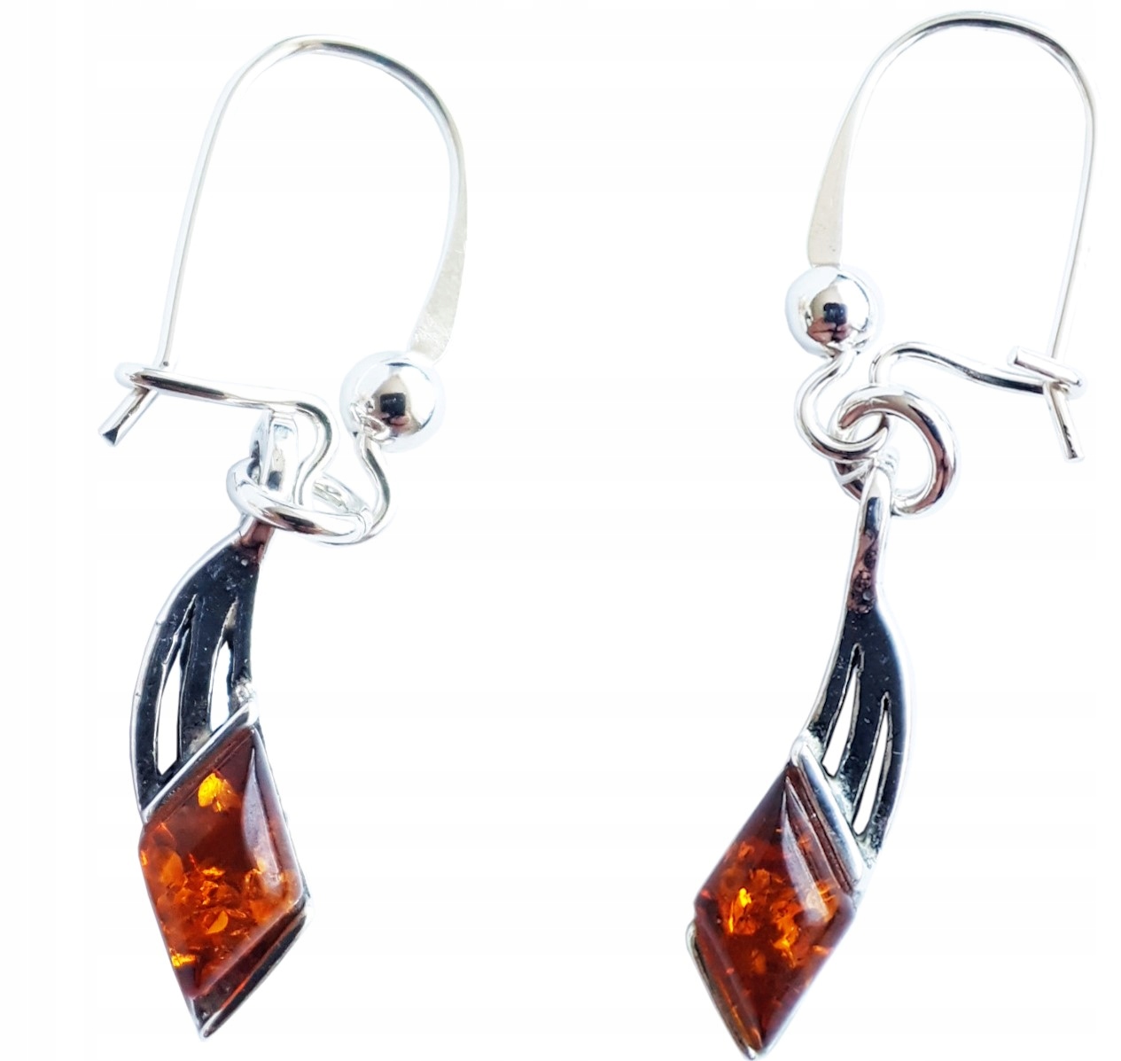 KOLCZYKI SREBRNE pr. 925 z BURSZTYNEM. Klasyka i oryginalność.