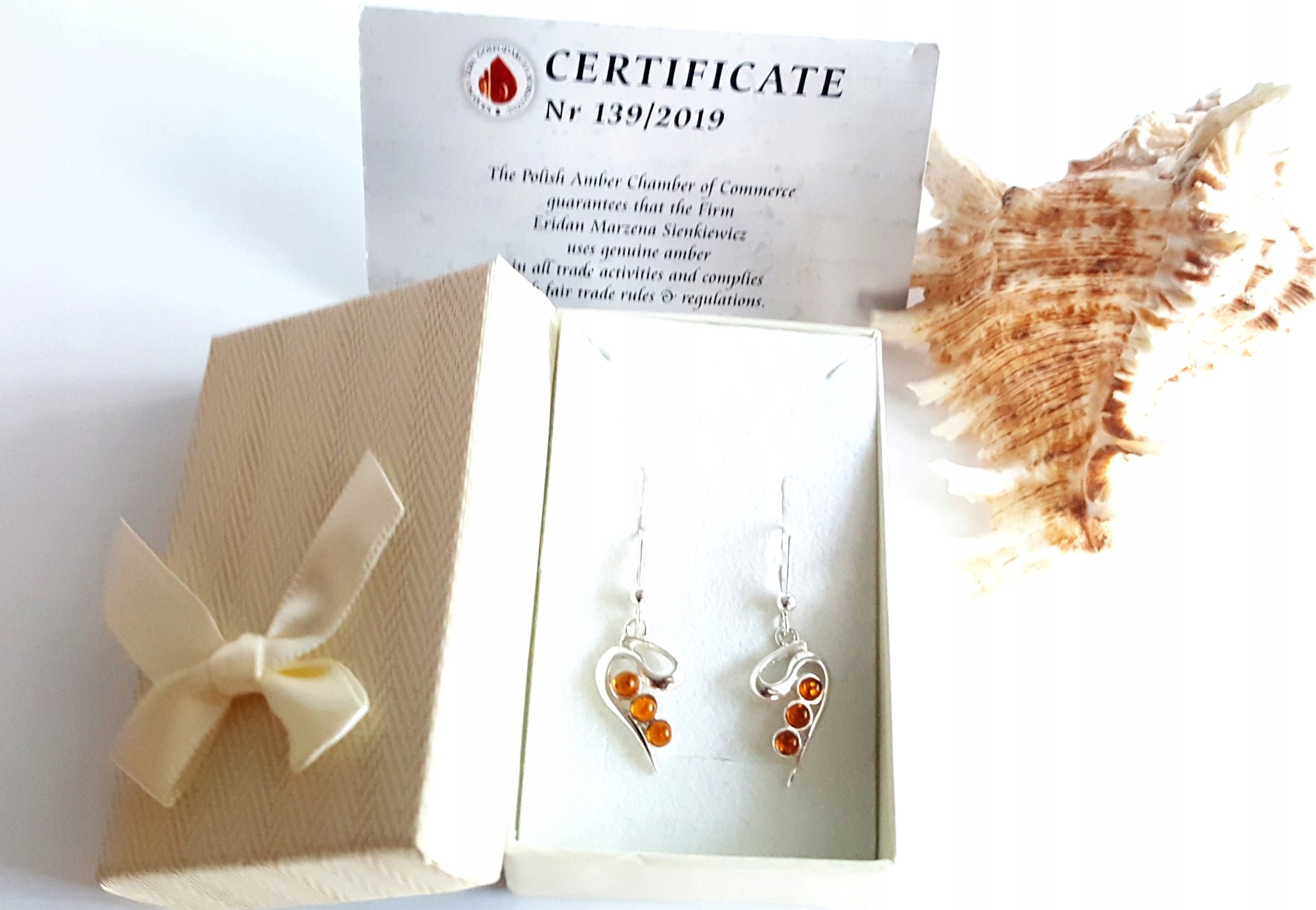 Oferowane kolczyki są zupełnie nowe i pochodzą od lokalnych jubilerów-artystów z Gdańska oraz okolic, zajmujących się na co dzień wzornictwem w bursztynie. Oczka w kolczykach są zrobione z naturalnego bursztynu.