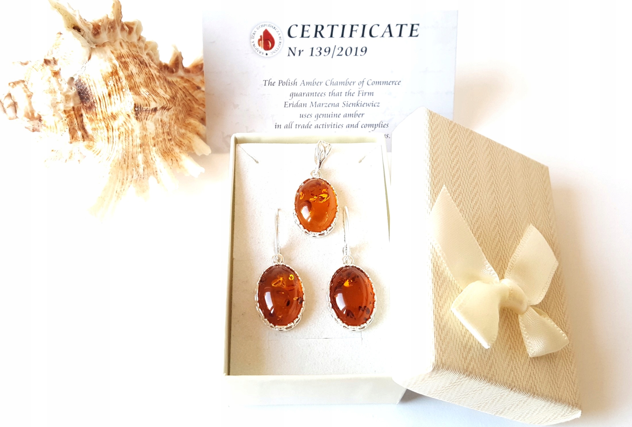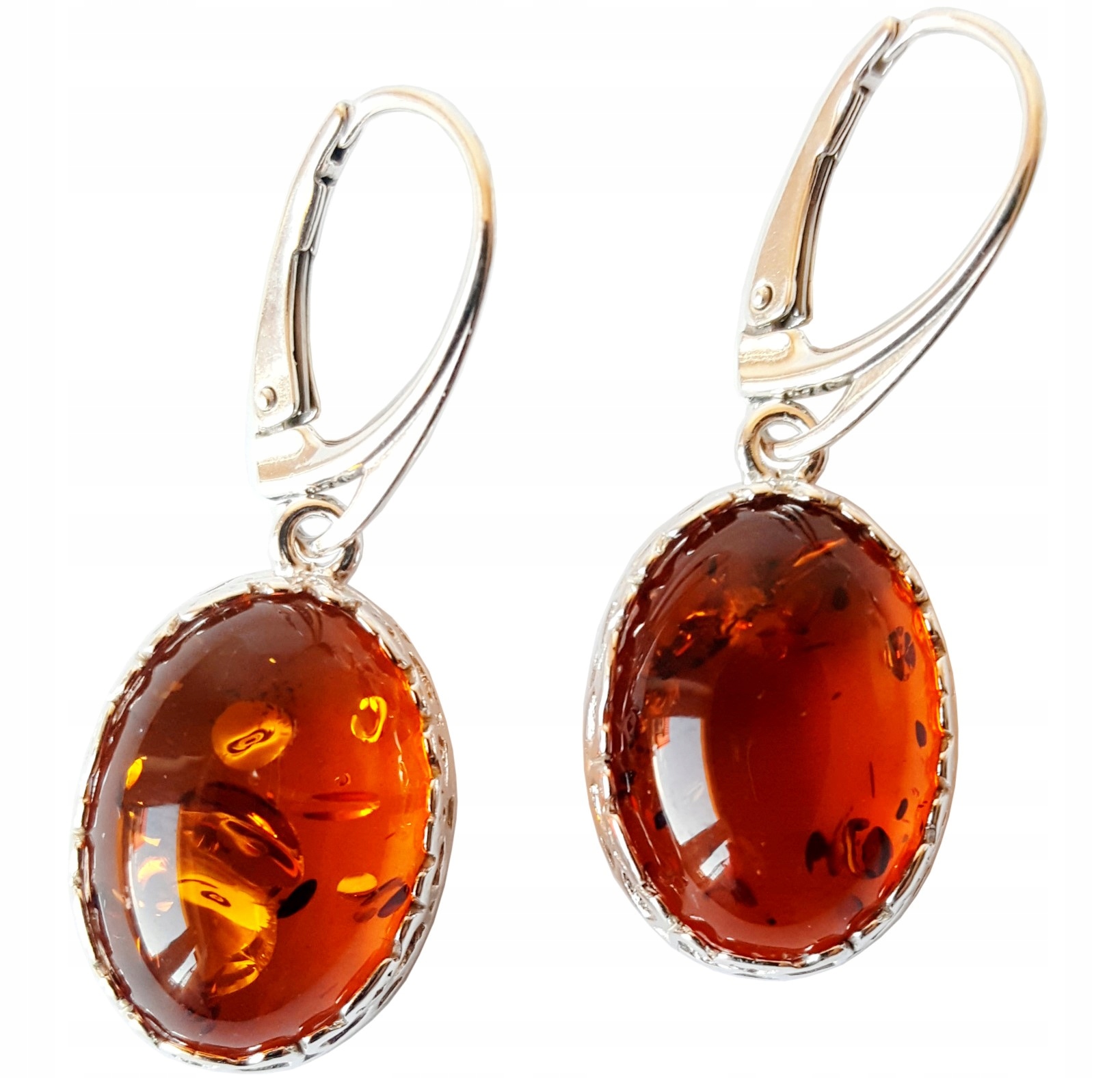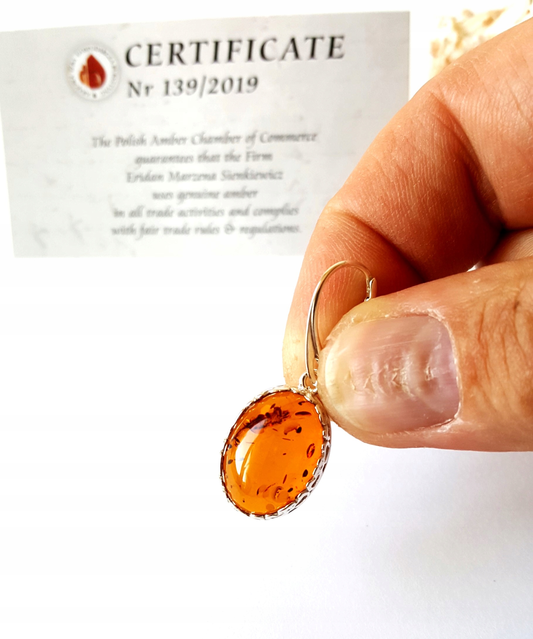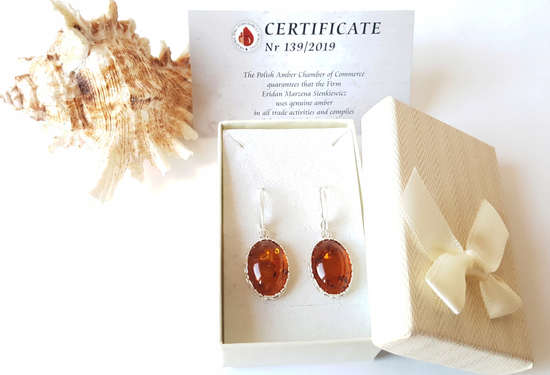KOLCZYKI srebrne z BURSZTYNEM na PREZENT + CERTYF.