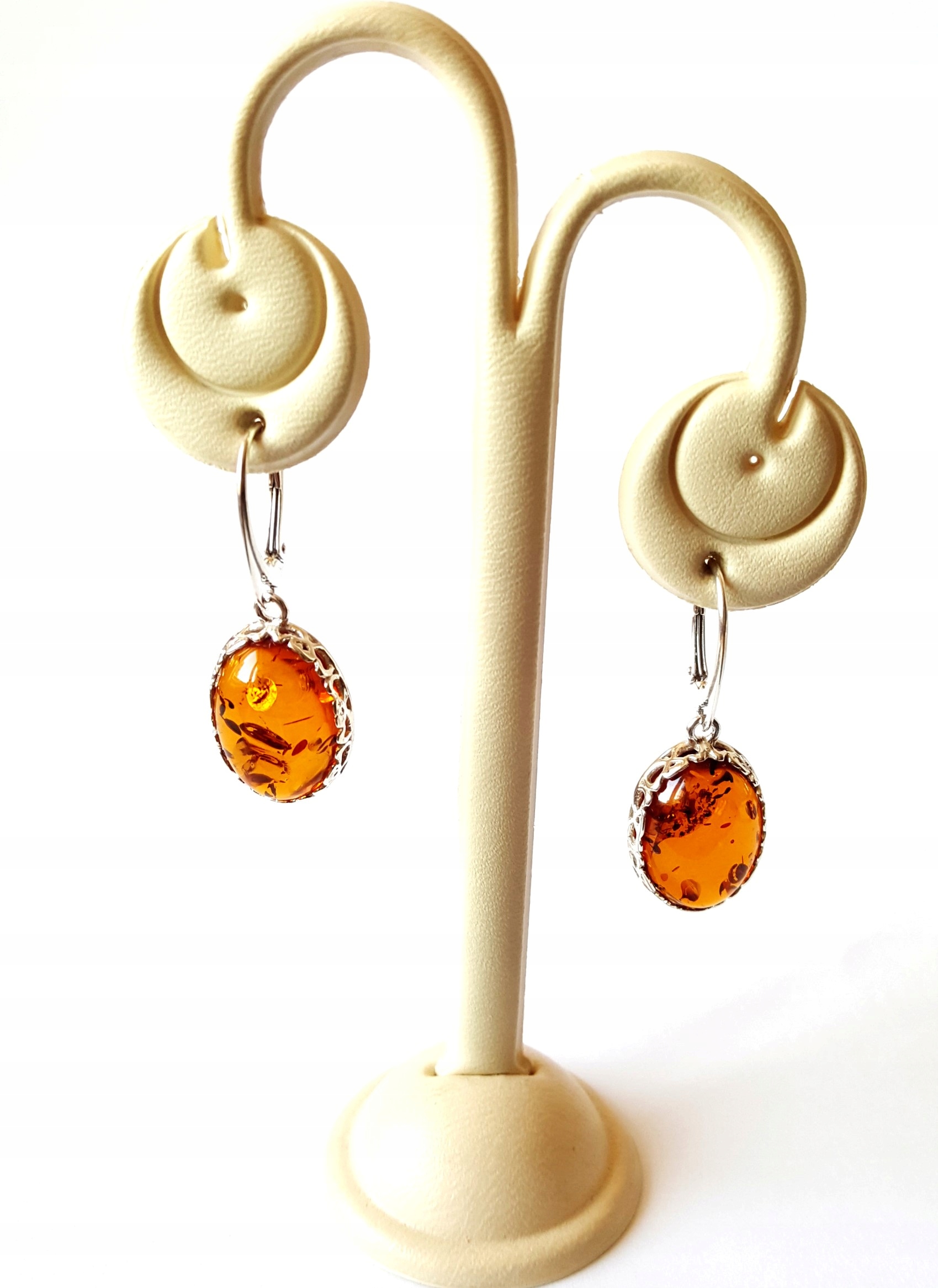 *** KOLCZYKI SREBRNE z prawdziwym BURSZTYNEM ***