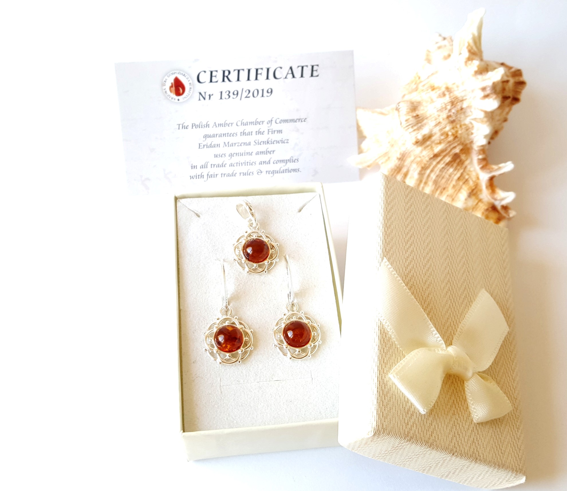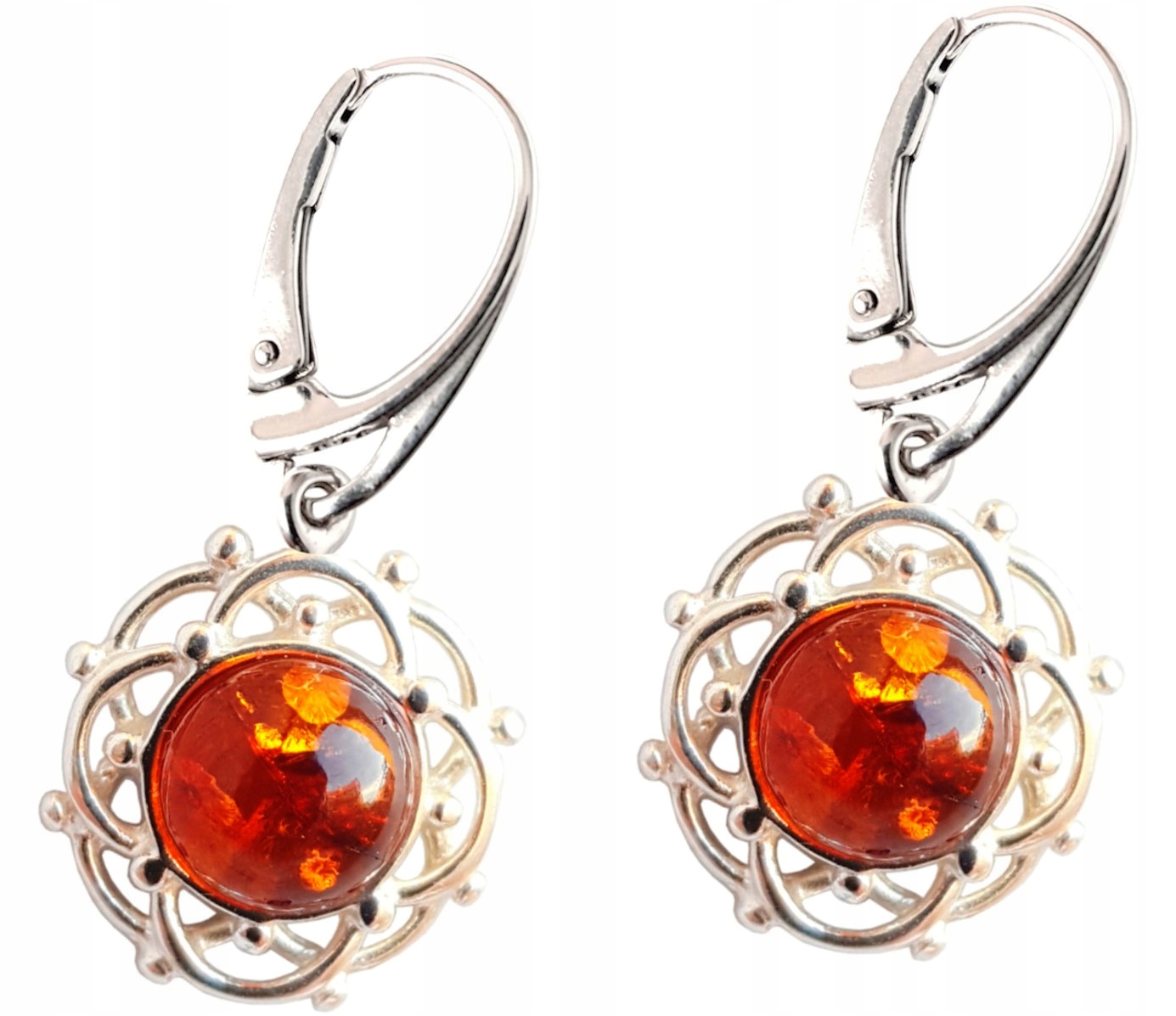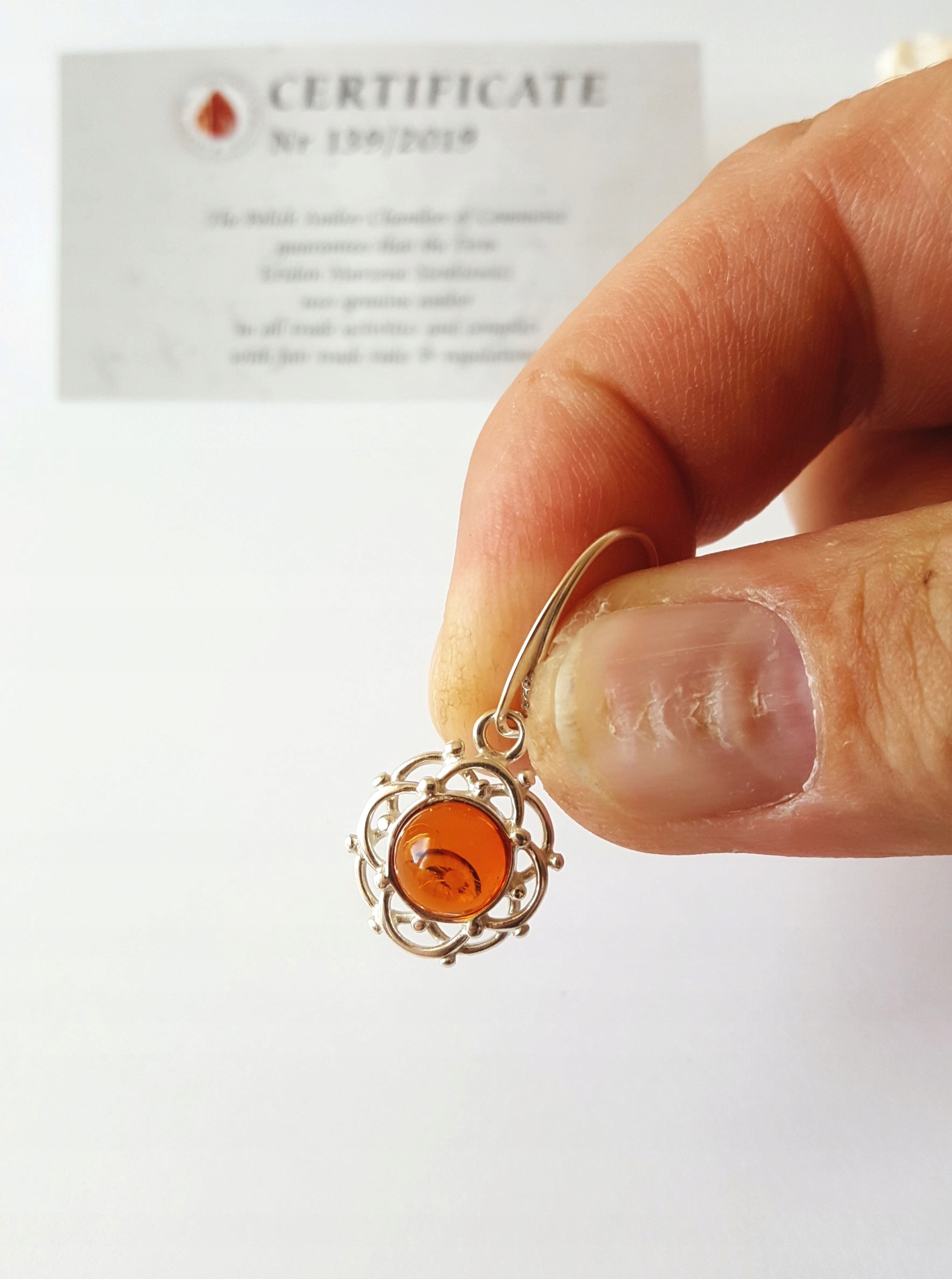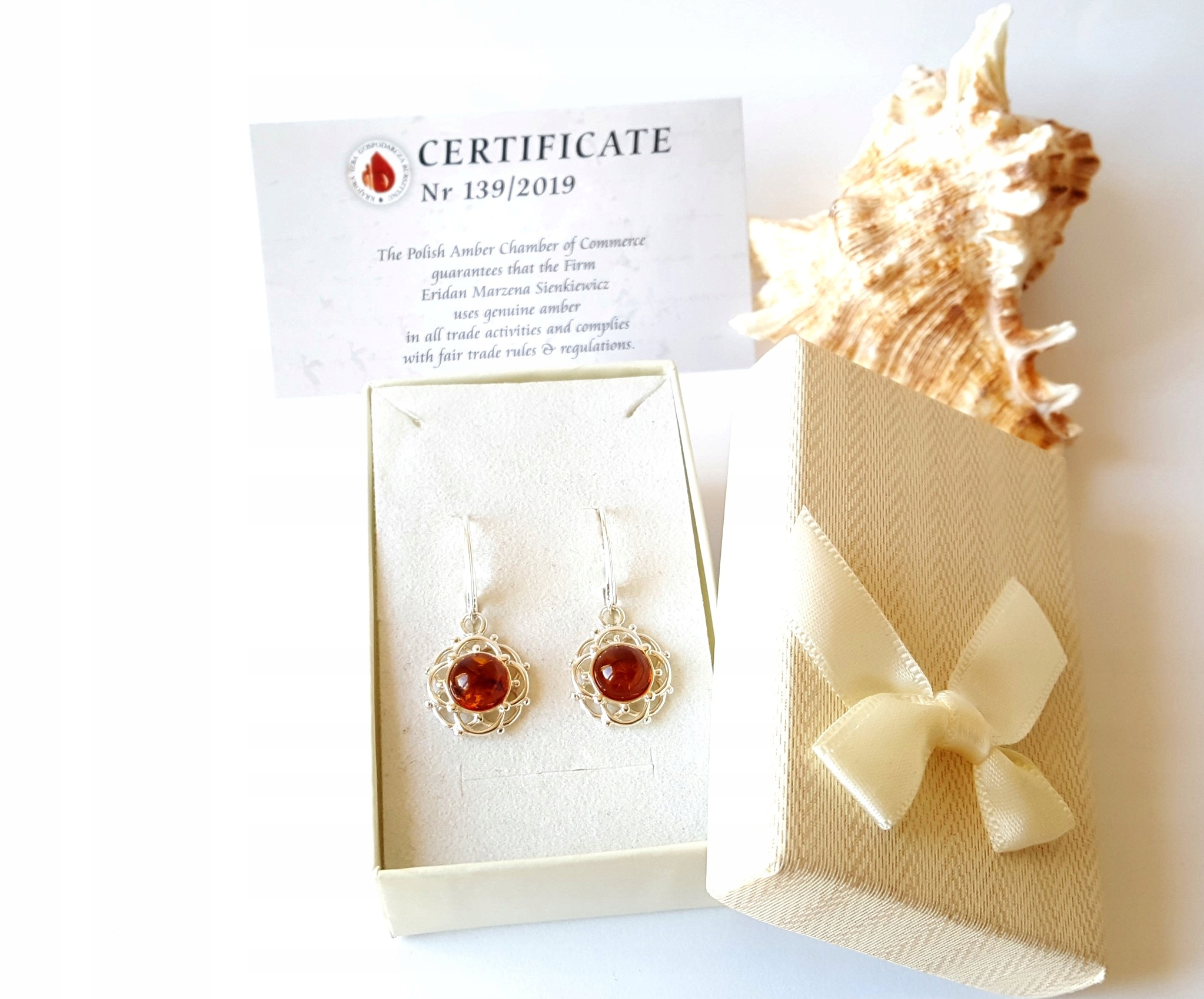 KOLCZYKI srebrne z BURSZTYNEM na PREZENT + CERTYF.
