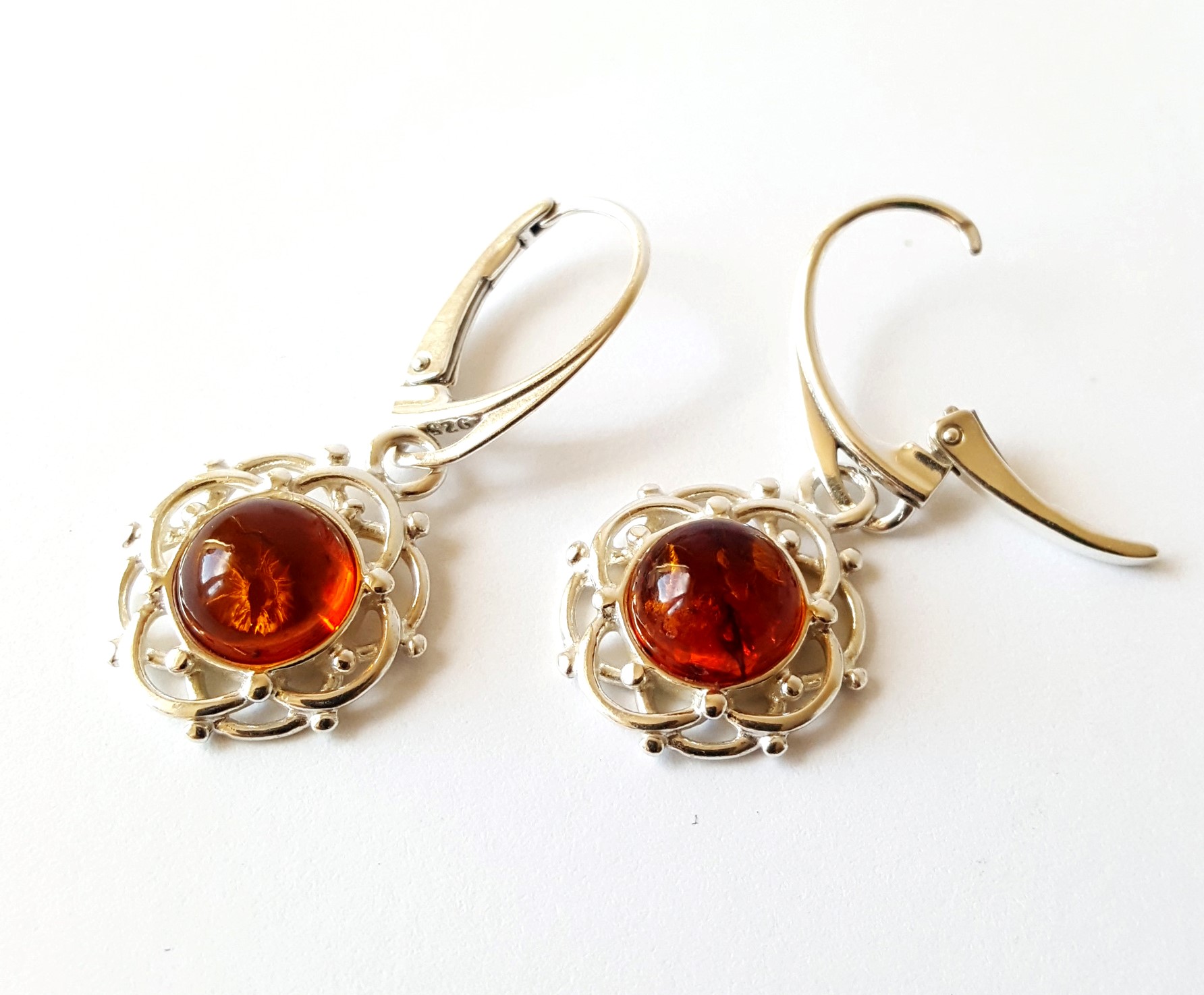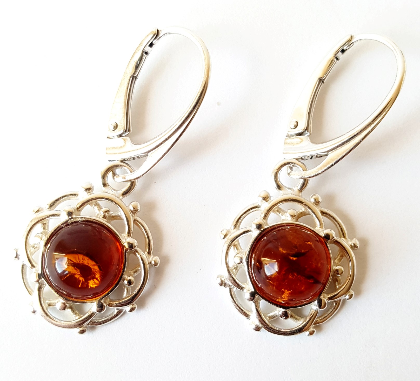 *** KOLCZYKI SREBRNE z naturalnym BURSZTYNEM ***