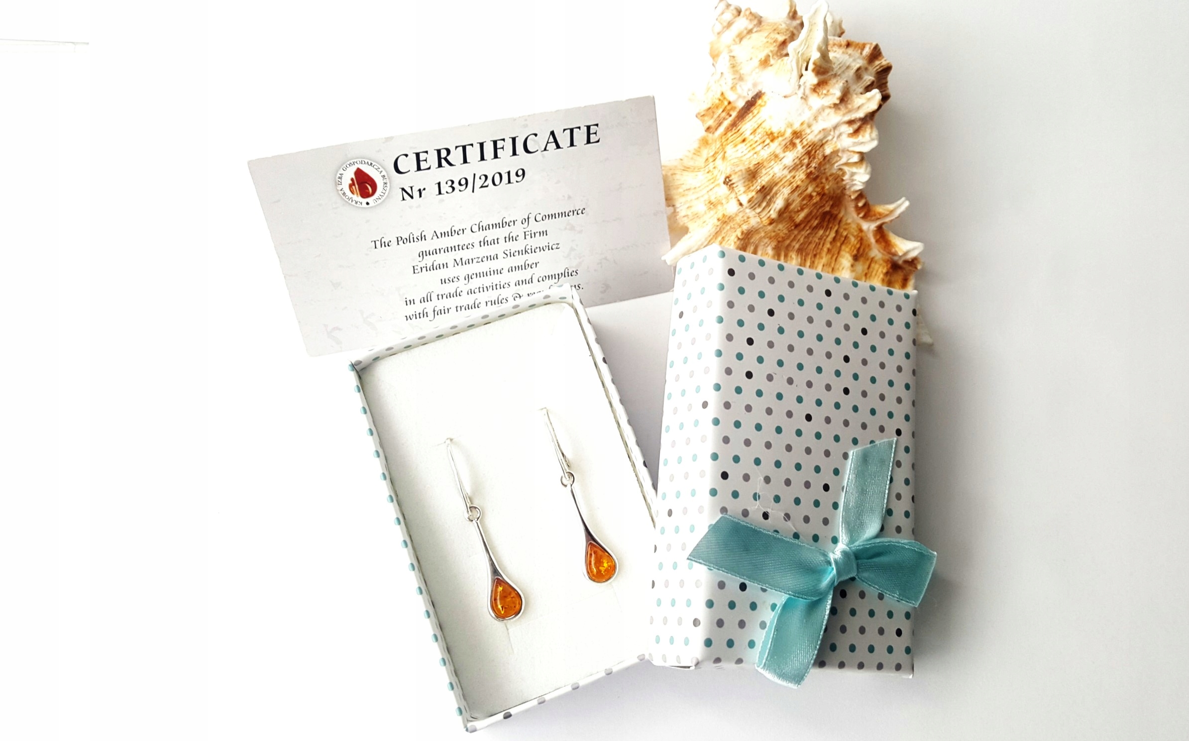 Kupując Nasze kolczyki z bursztynem możecie być Państwo pewni, że zostaną one zapakowane w bardzo ładne pudełko jubilerskie. Zupełnie za darmo. Pudełka wybieramy losowo, zawsze kierując się tym, aby idealnie pasowały do wybranych przez Państwa kolczyków.