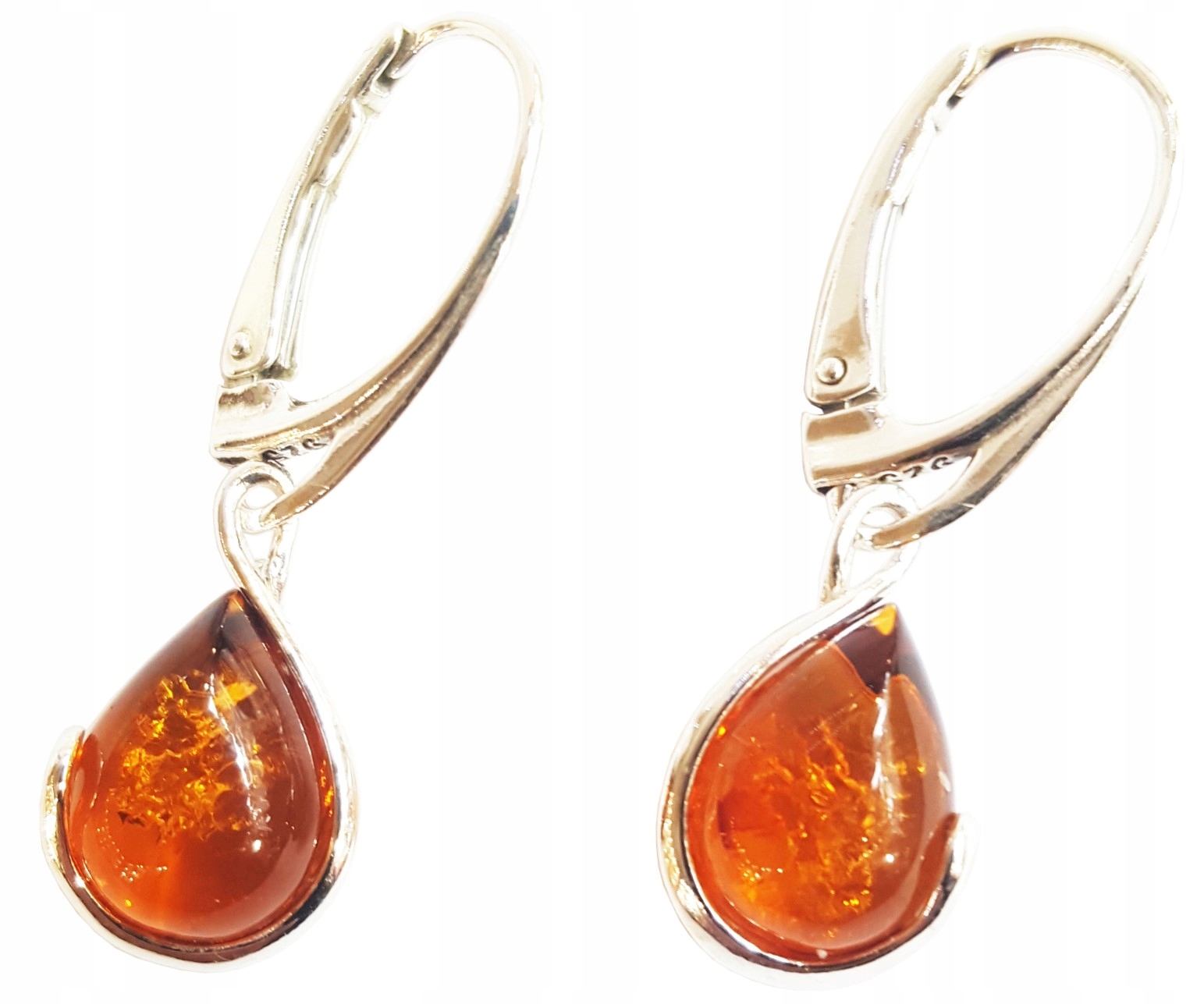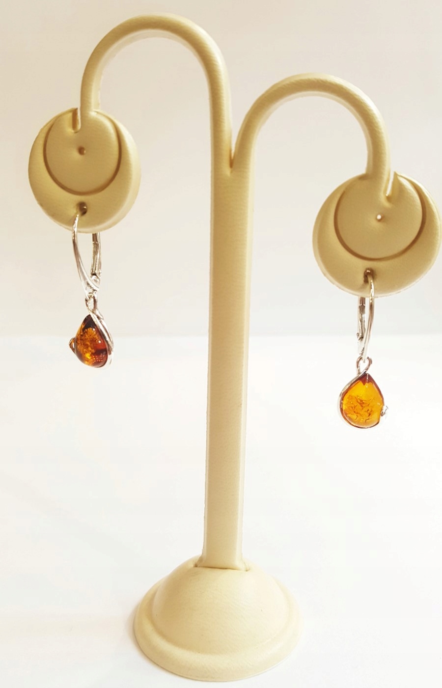 Eleganckie KOLCZYKI SREBRNE pr. 925 z BURSZTYNEM. Klasyka i oryginalność.