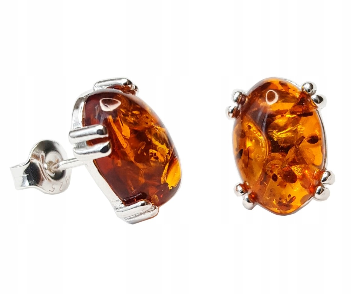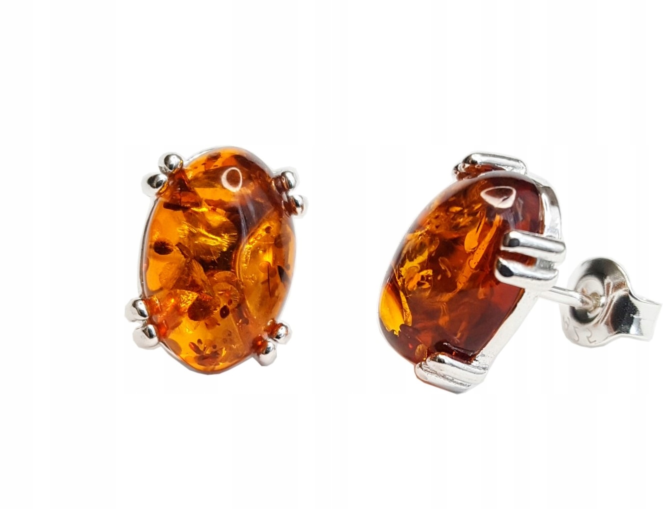 *** sztyfty – KOLCZYKI SREBRNE z prawdziwym BURSZTYNEM ***