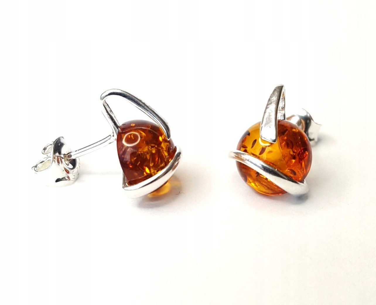 *** sztyfty – KOLCZYKI SREBRNE z prawdziwym BURSZTYNEM ***