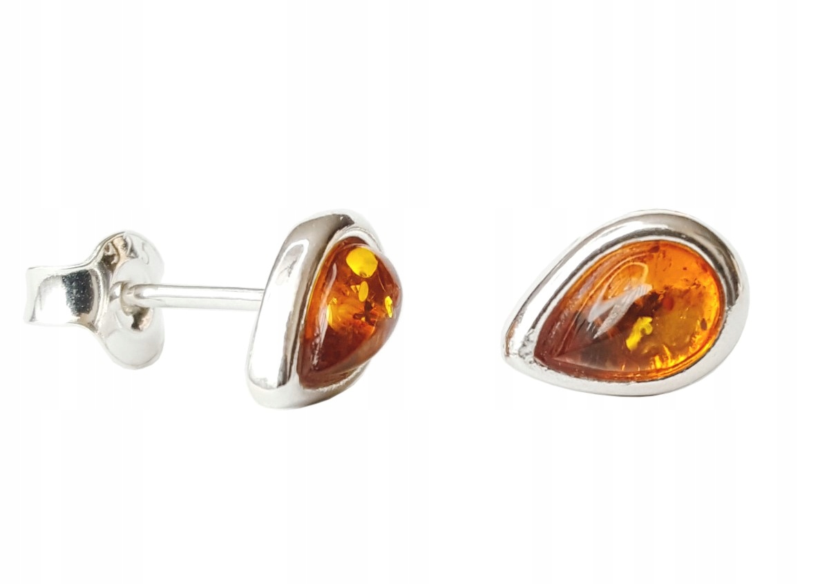 *** sztyfty – KOLCZYKI SREBRNE z prawdziwym BURSZTYNEM ***