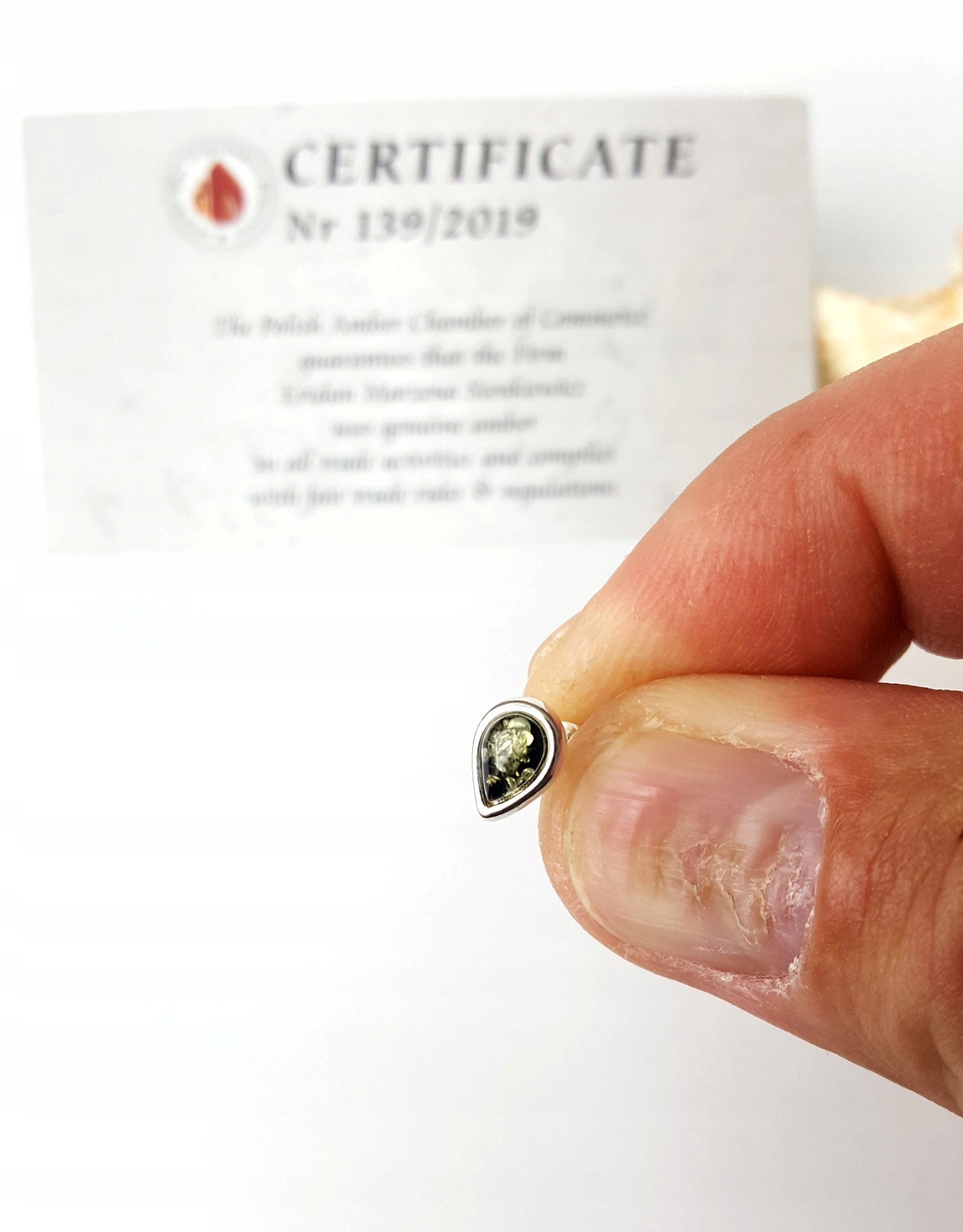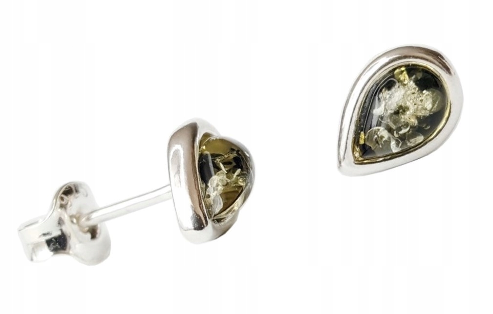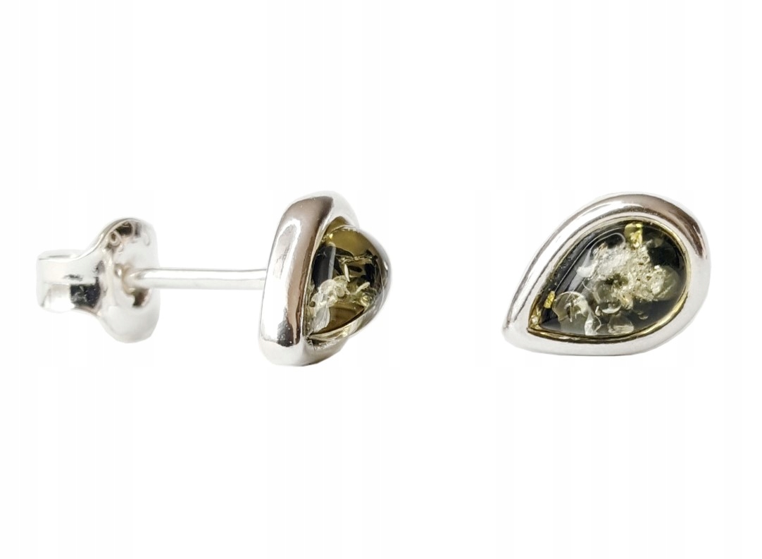 Oferujemy Państwu sztyftowe, wyjątkowe i delikatne kolczyki srebrne pr. 925 z zielonym bursztynem.