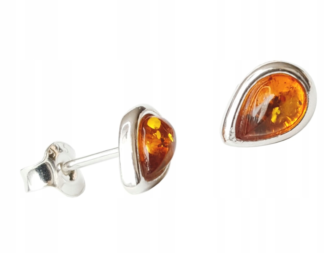 *** sztyfty – KOLCZYKI SREBRNE z prawdziwym BURSZTYNEM ***