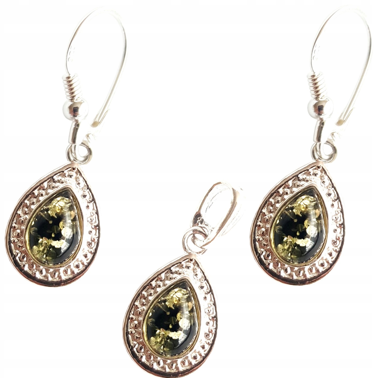 Klasyka i oryginalność. Prawdziwy BURSZTYN naturalny. Kolor ZIELONY. Autentyczne SREBRO