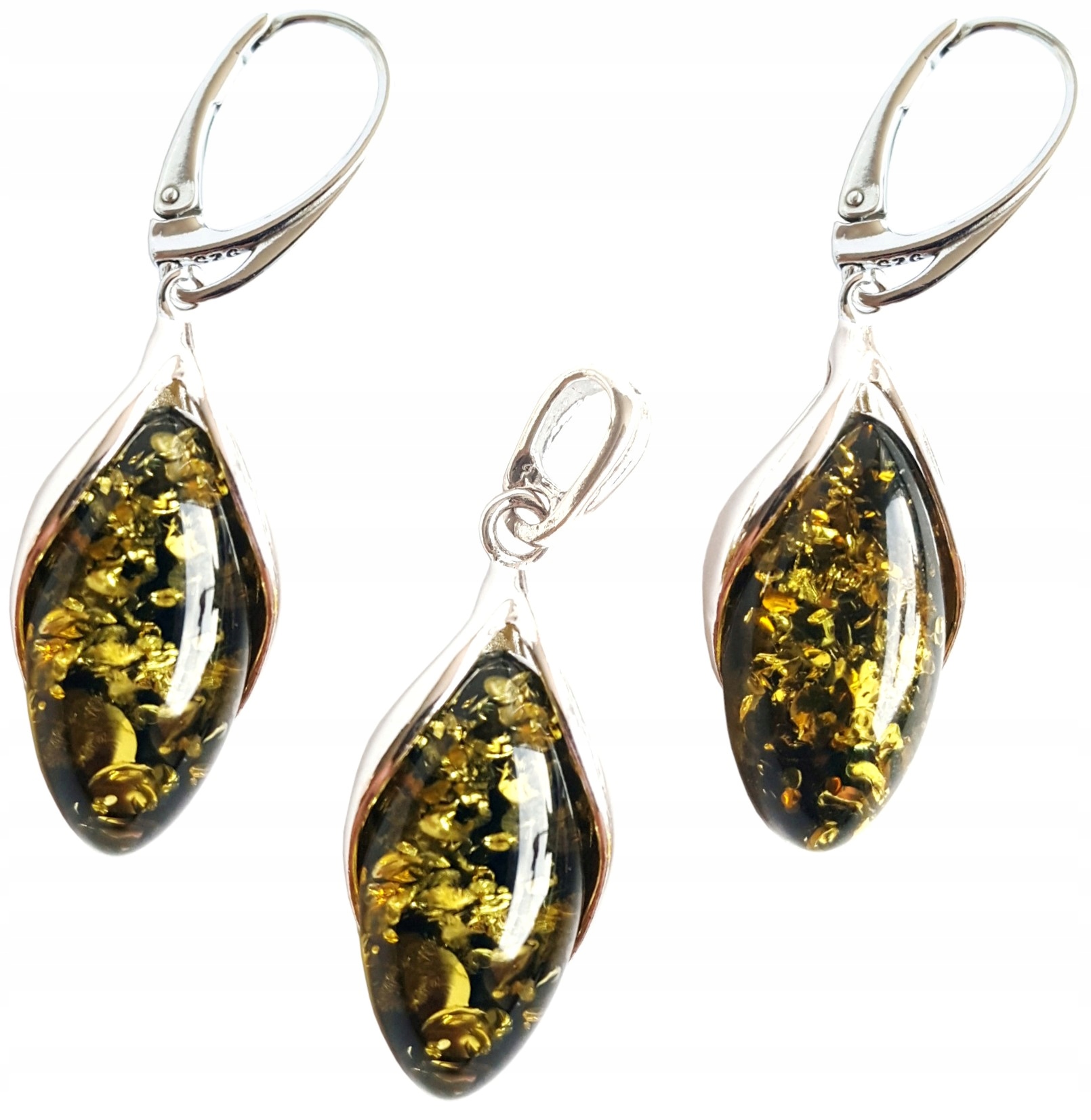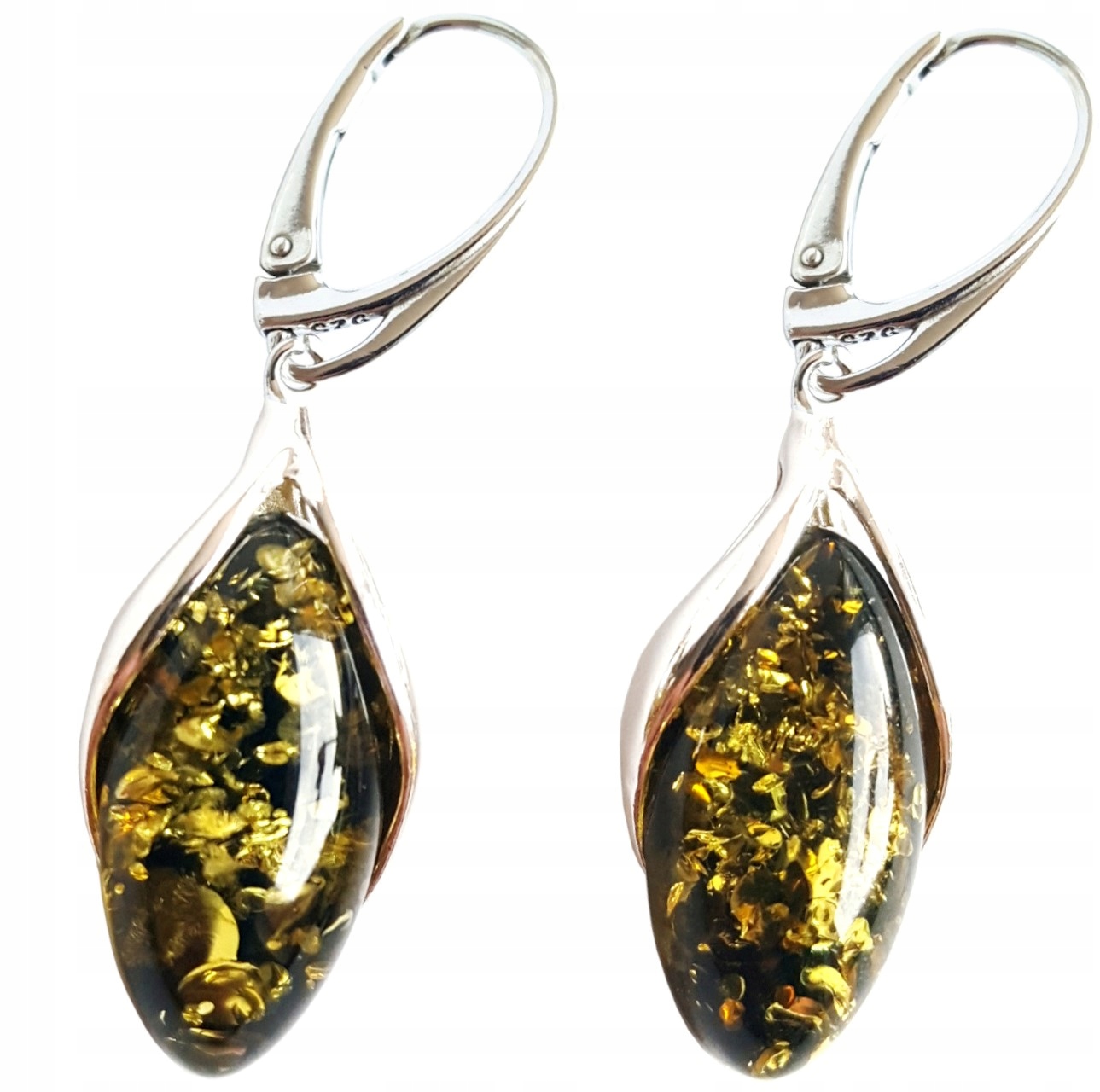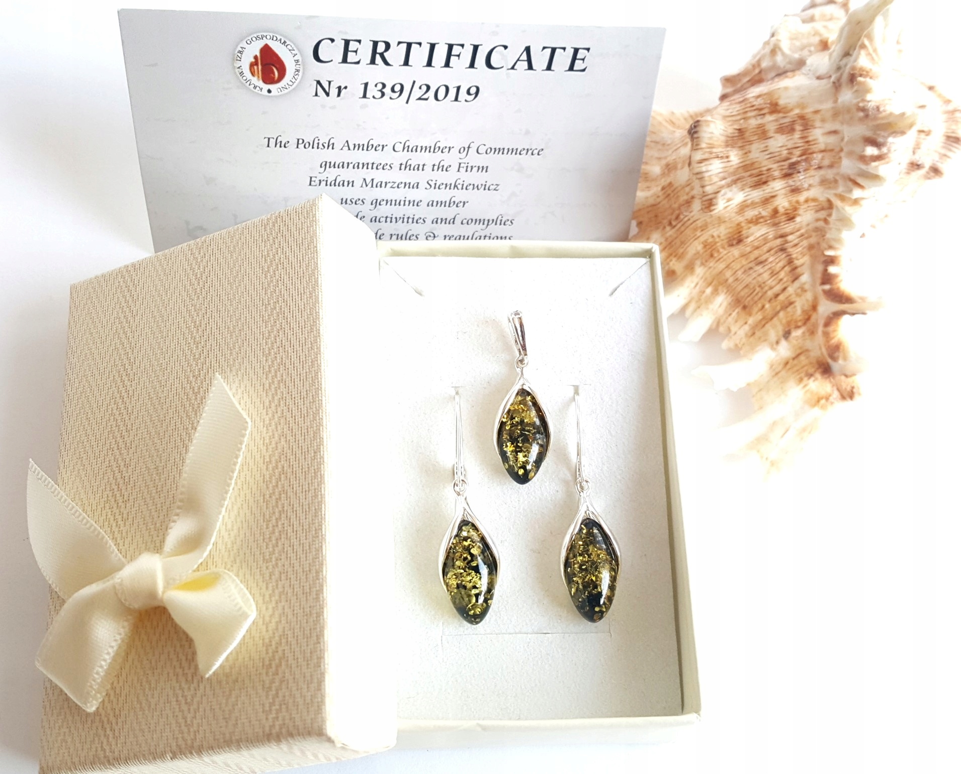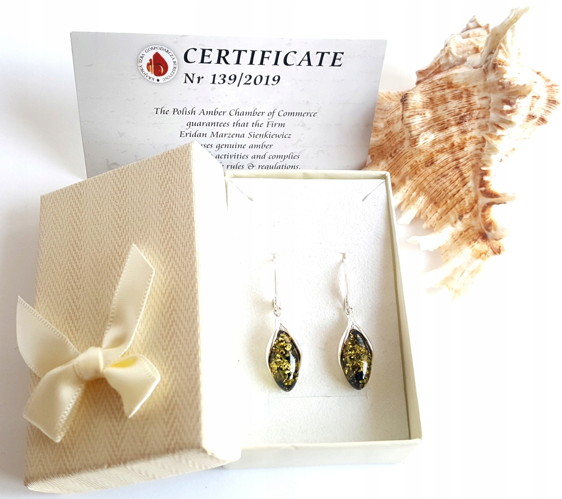 KOLCZYKI SREBRNE z BURSZTYNEM *ZIELONE* CERTYFIKAT