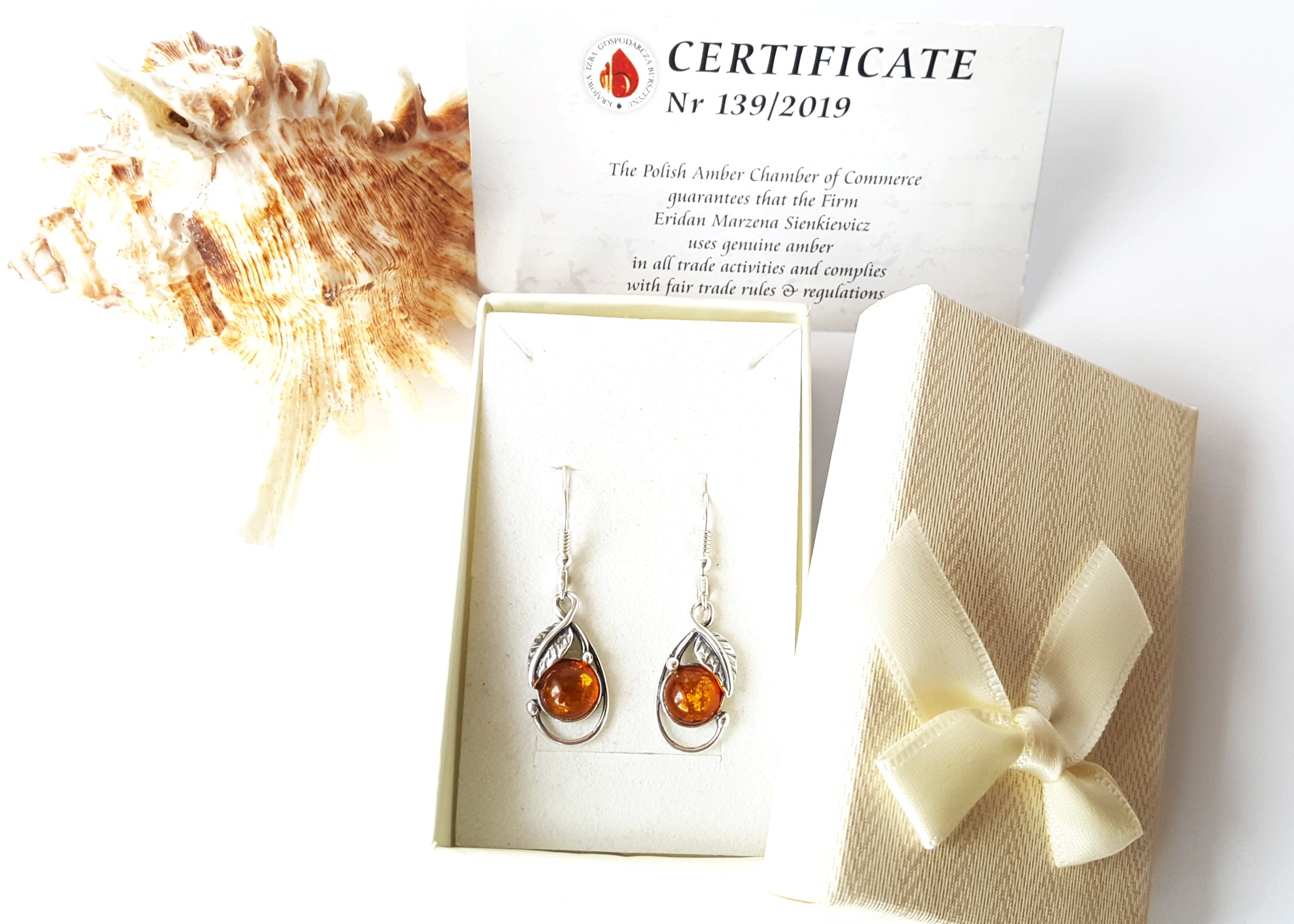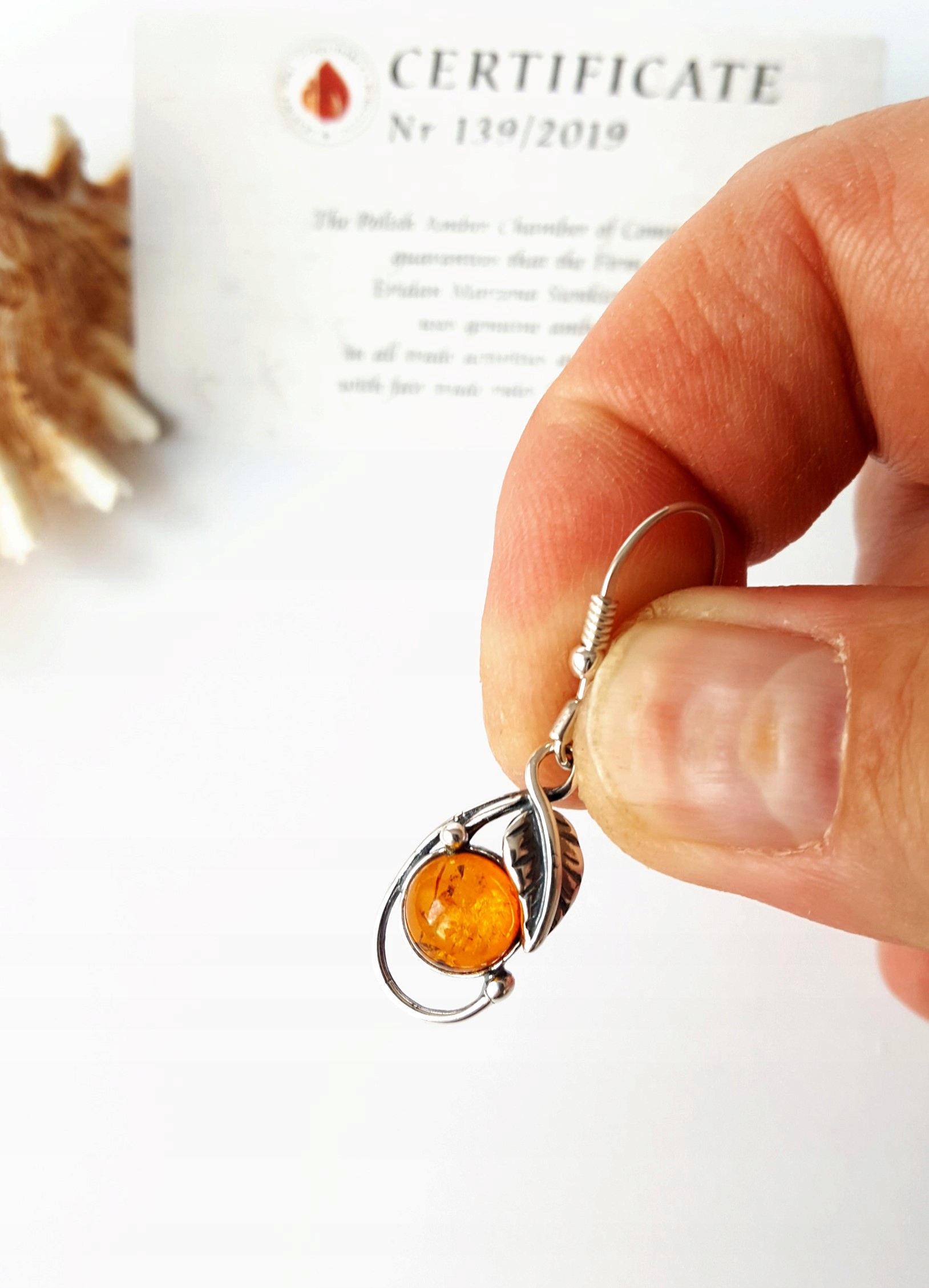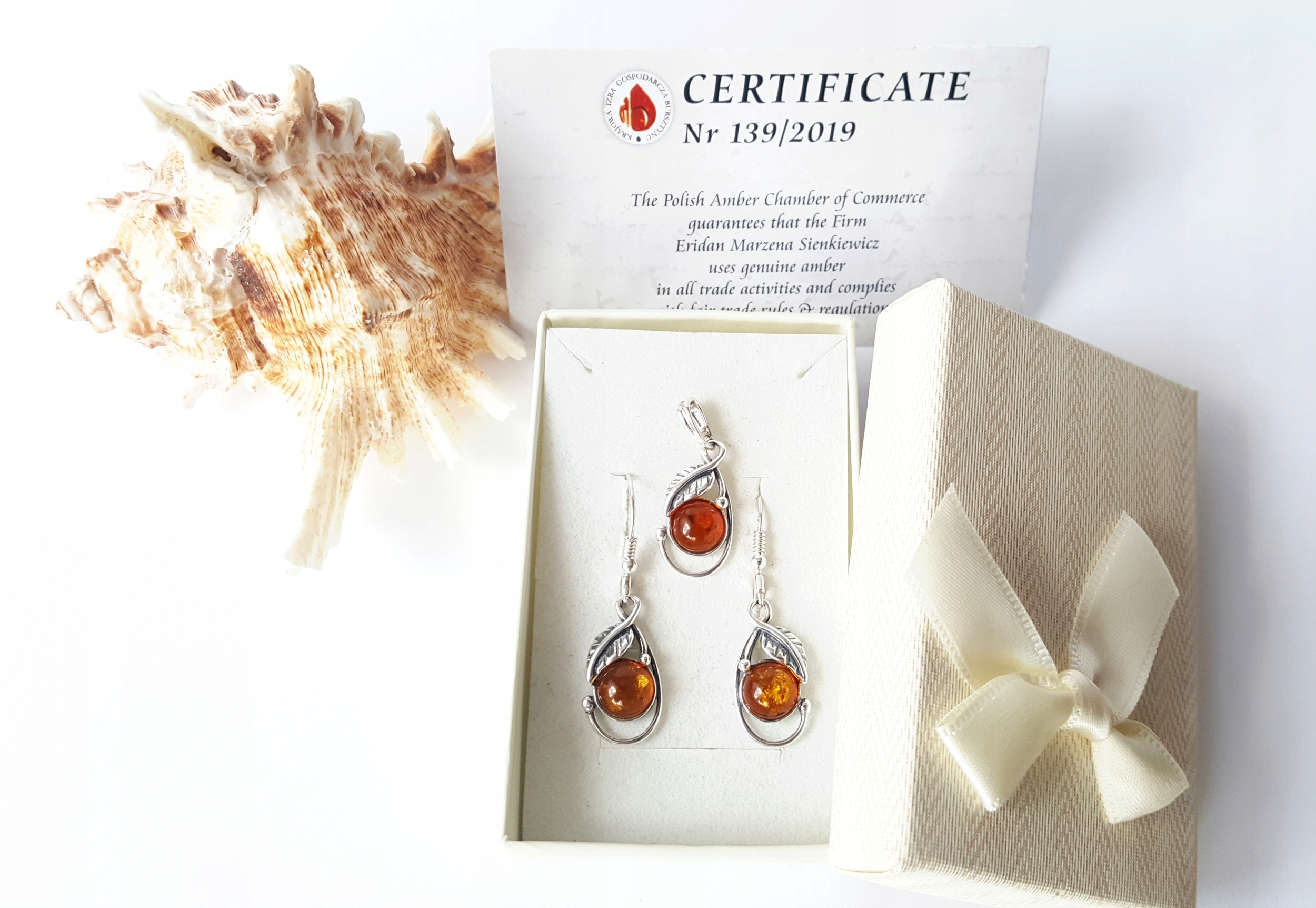 NATURALNY BURSZTYN * AUTENTYCZNE SREBRO pr. 925 * CERTYFIKAT