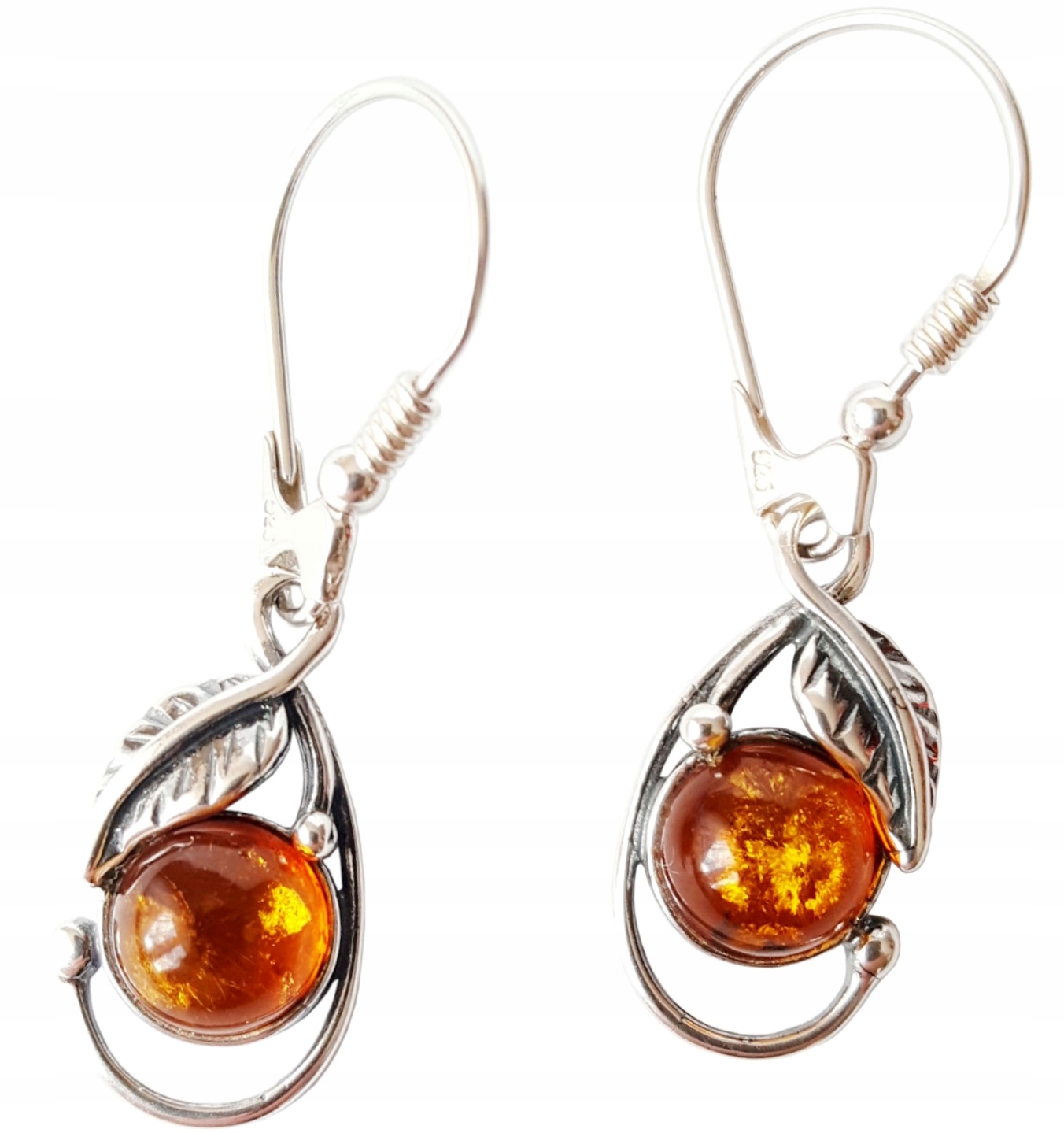 *** KOLCZYKI SREBRNE z BURSZTYNEM ***