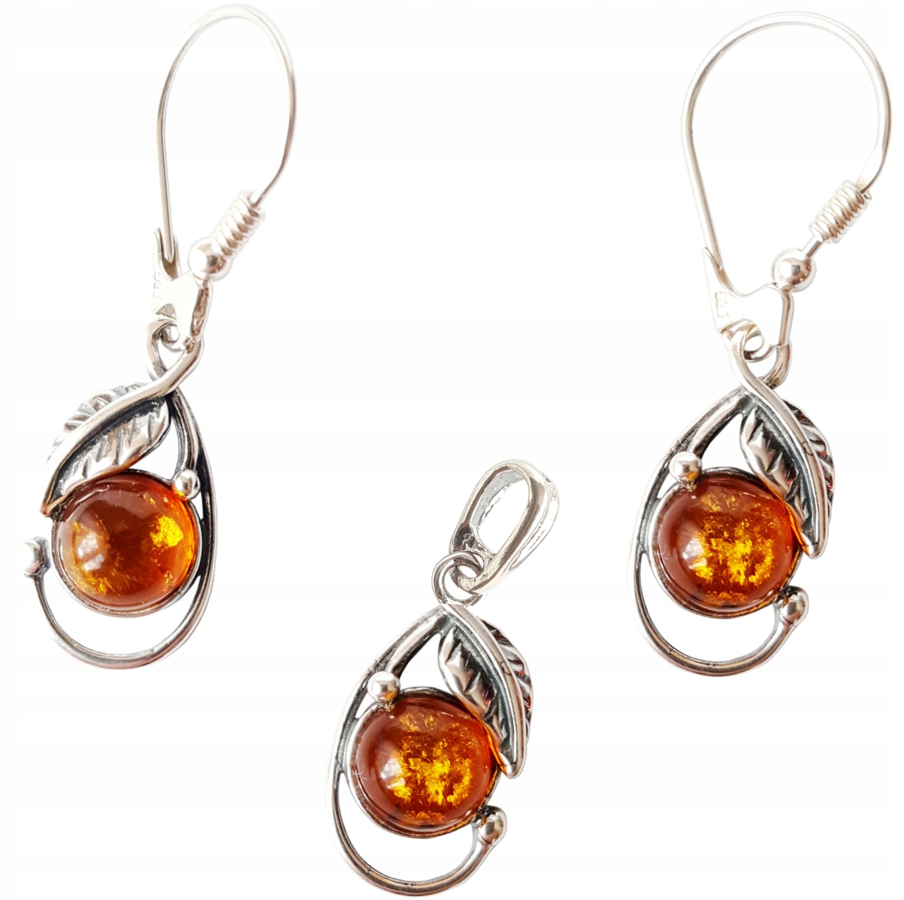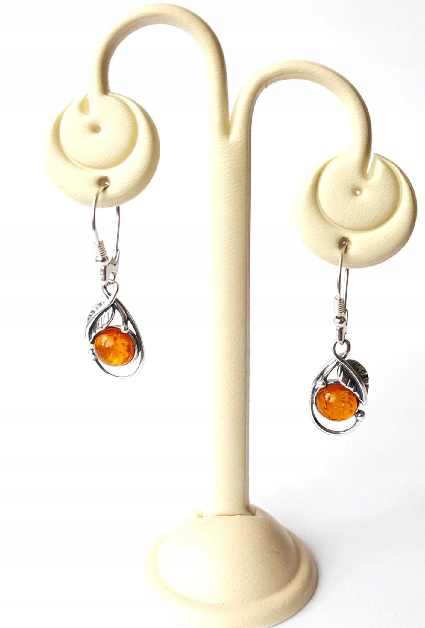 *** KOLCZYKI SREBRNE z prawdziwym BURSZTYNEM ***