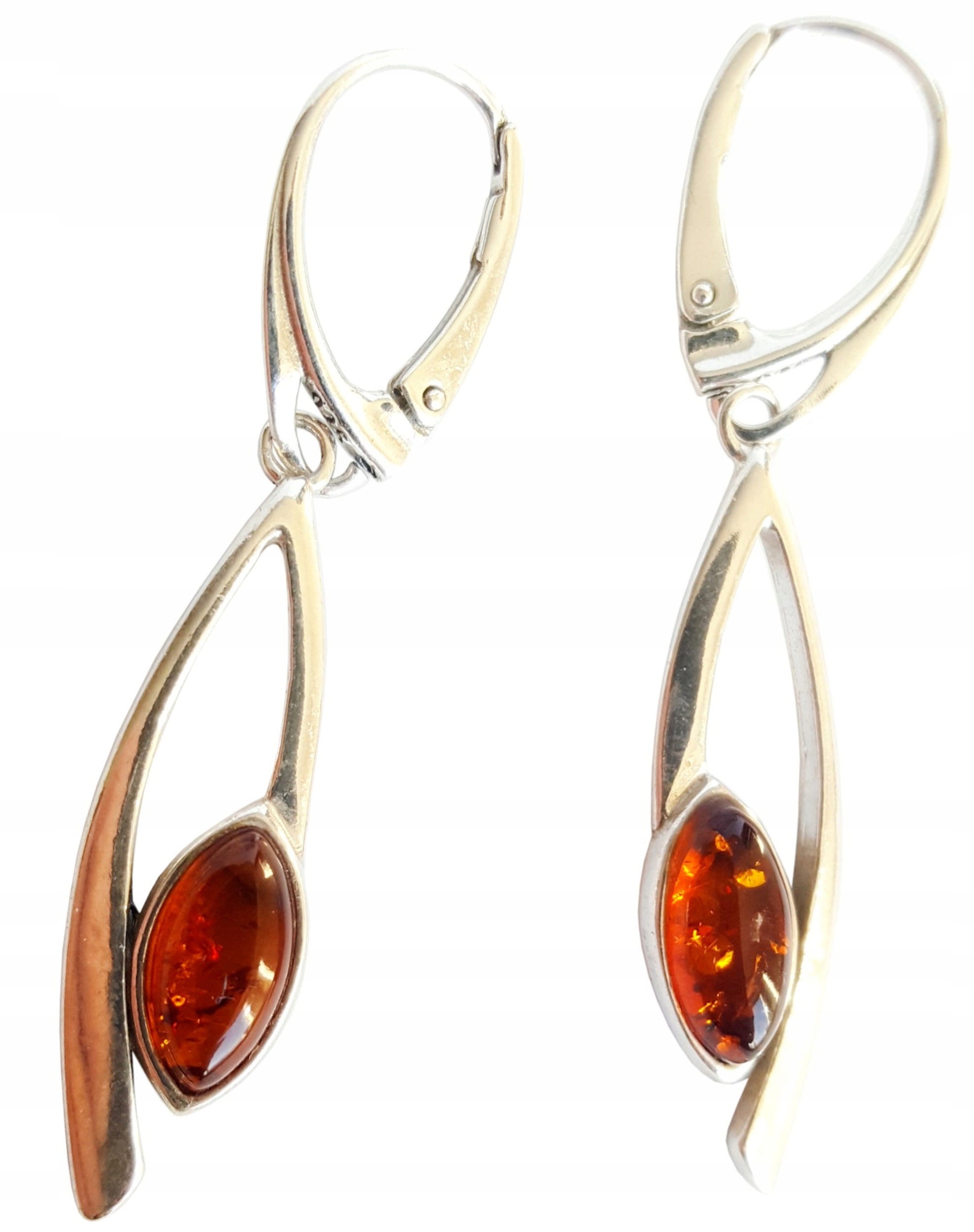 *** długie KOLCZYKI srebrne z BURSZTYNEM + WISIOREK ***