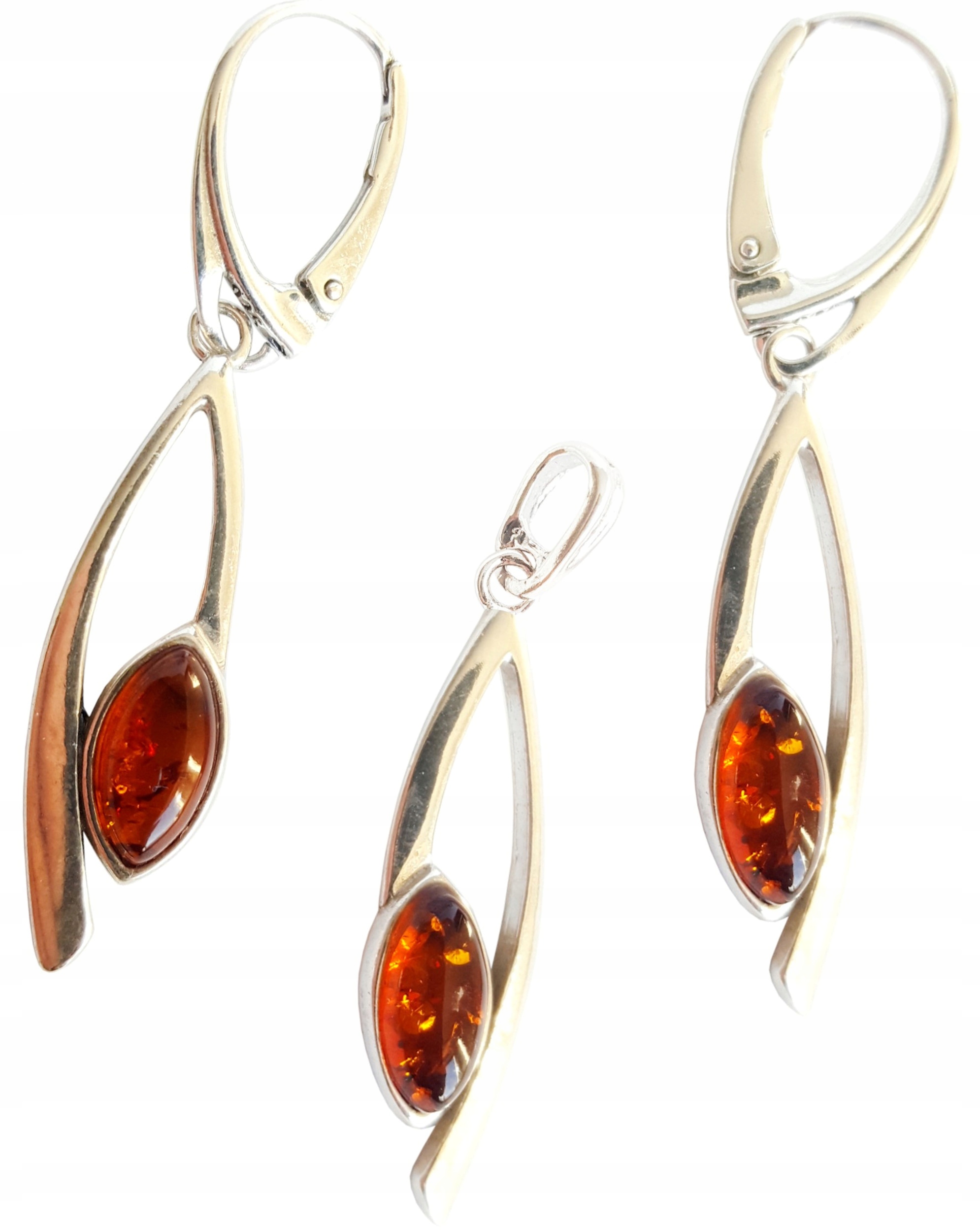 Oferujemy Państwu wyjątkowy KOMPLET srebrny z bursztynem – KOLCZYKI + WISIOREK.
