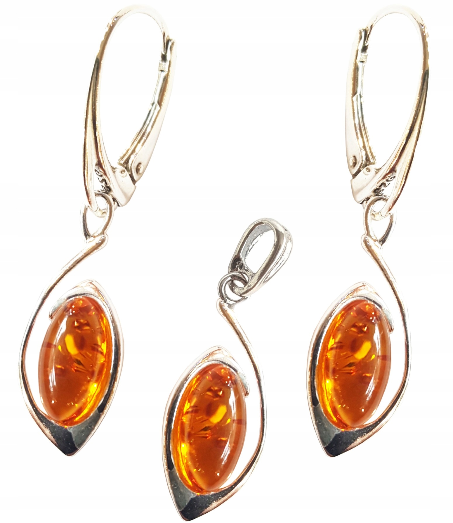 Oferujemy Państwu wyjątkowy KOMPLET srebrny z bursztynem – KOLCZYKI + WISIOREK.