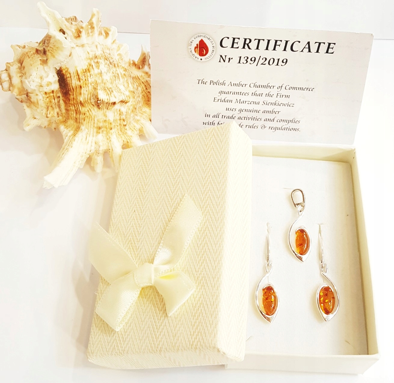 *** Naturalny i prawdziwy BURSZTYN *** SREBRO 925 *** CERTYFIKAT AUTENTYCZNOŚCI ***