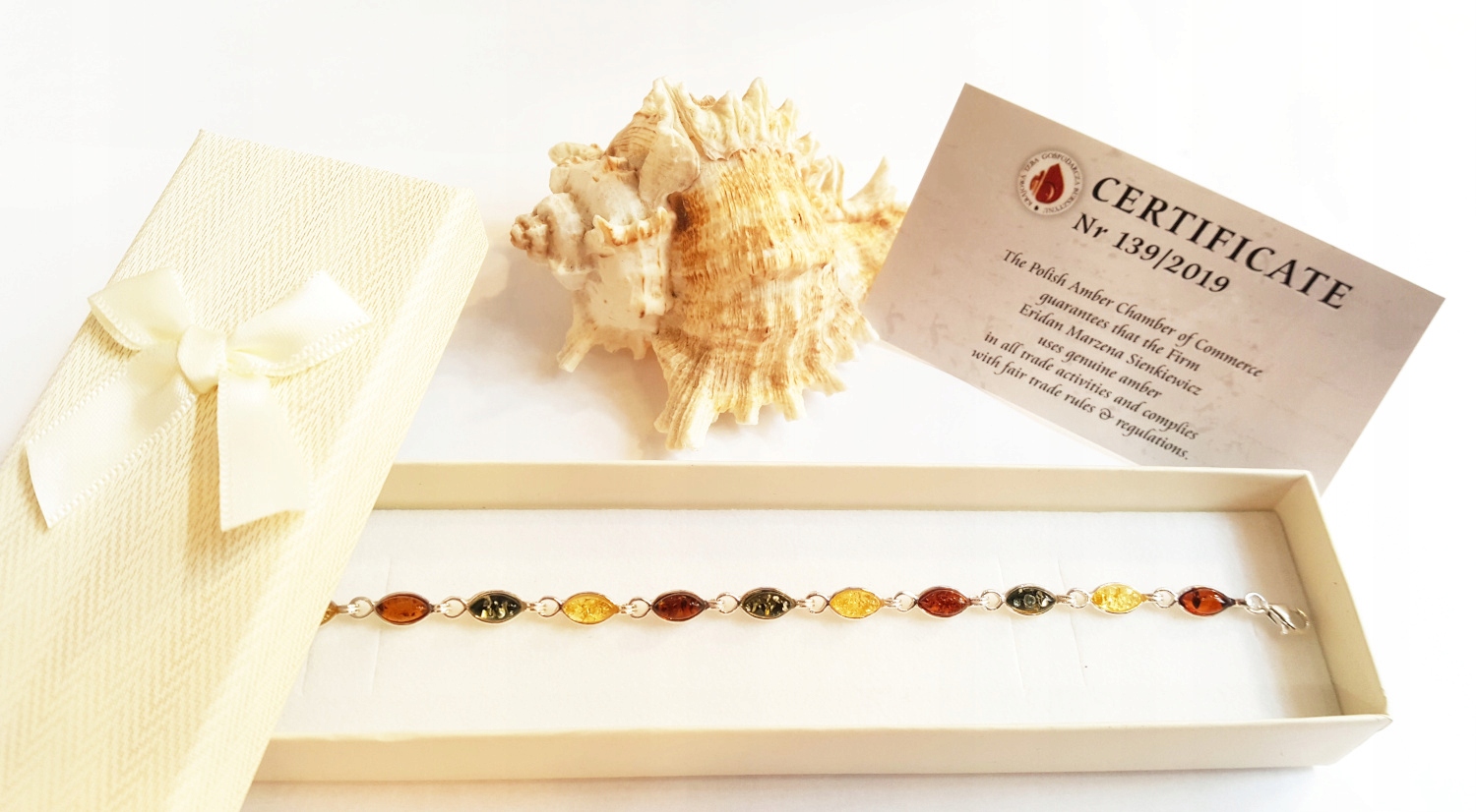Zgodnie z posiadanym certyfikatem stosujemy w obrocie jedynie bursztyn prawdziwy.