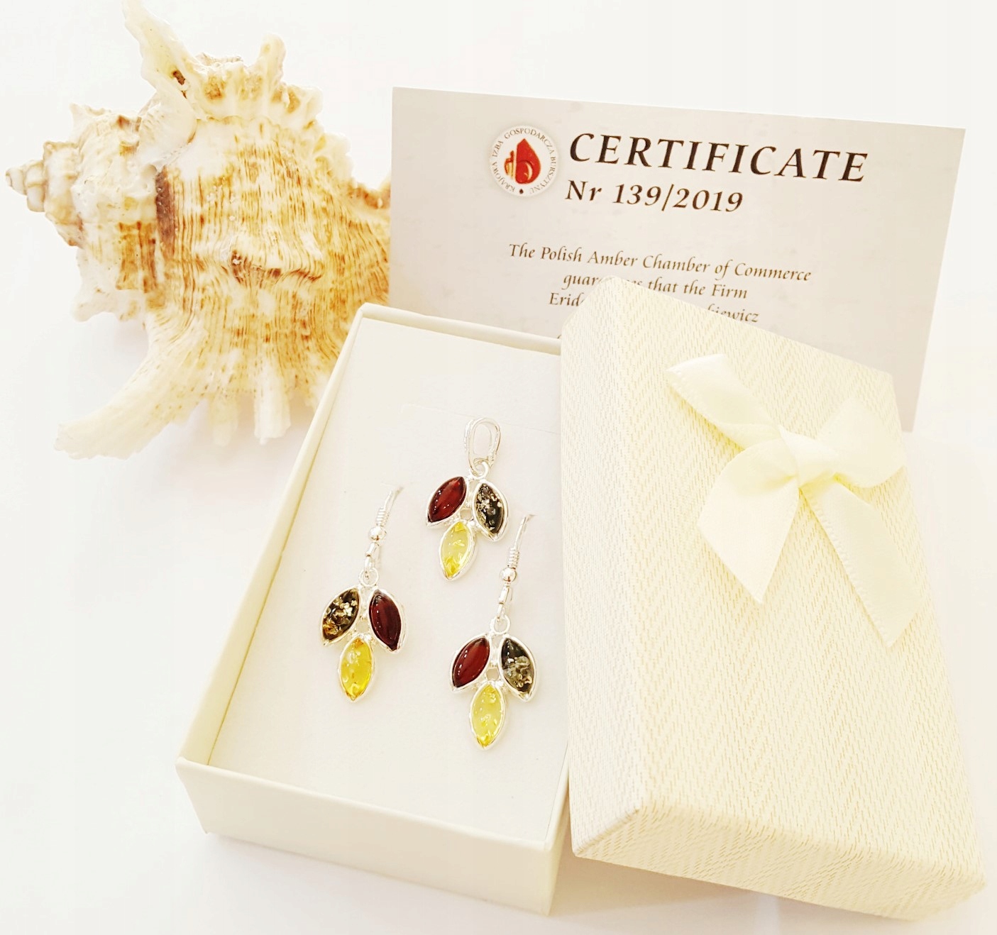 Kupując Nasz komplet srebrnych kolczyków i zawieszki z bursztynem możecie być Państwo pewni, że zostanie on zapakowany w bardzo ładne pudełko jubilerskie. Zupełnie za darmo. Pudełka wybieramy losowo, zawsze kierując się tym, aby idealnie pasowały do wybranego przez Państwa zestawu.