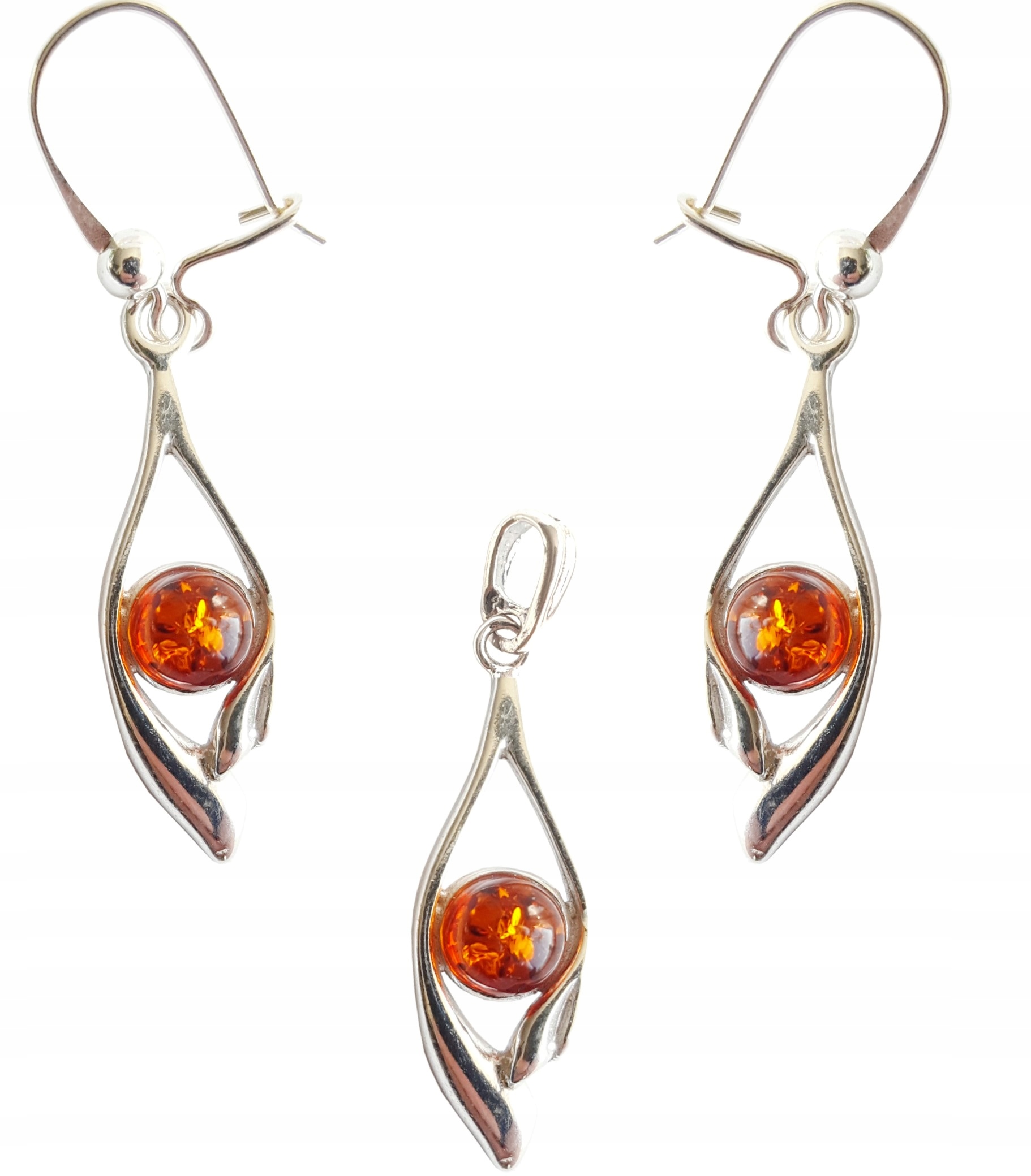 Oferujemy Państwu wyjątkowy KOMPLET srebrny z bursztynem – KOLCZYKI + WISIOREK.