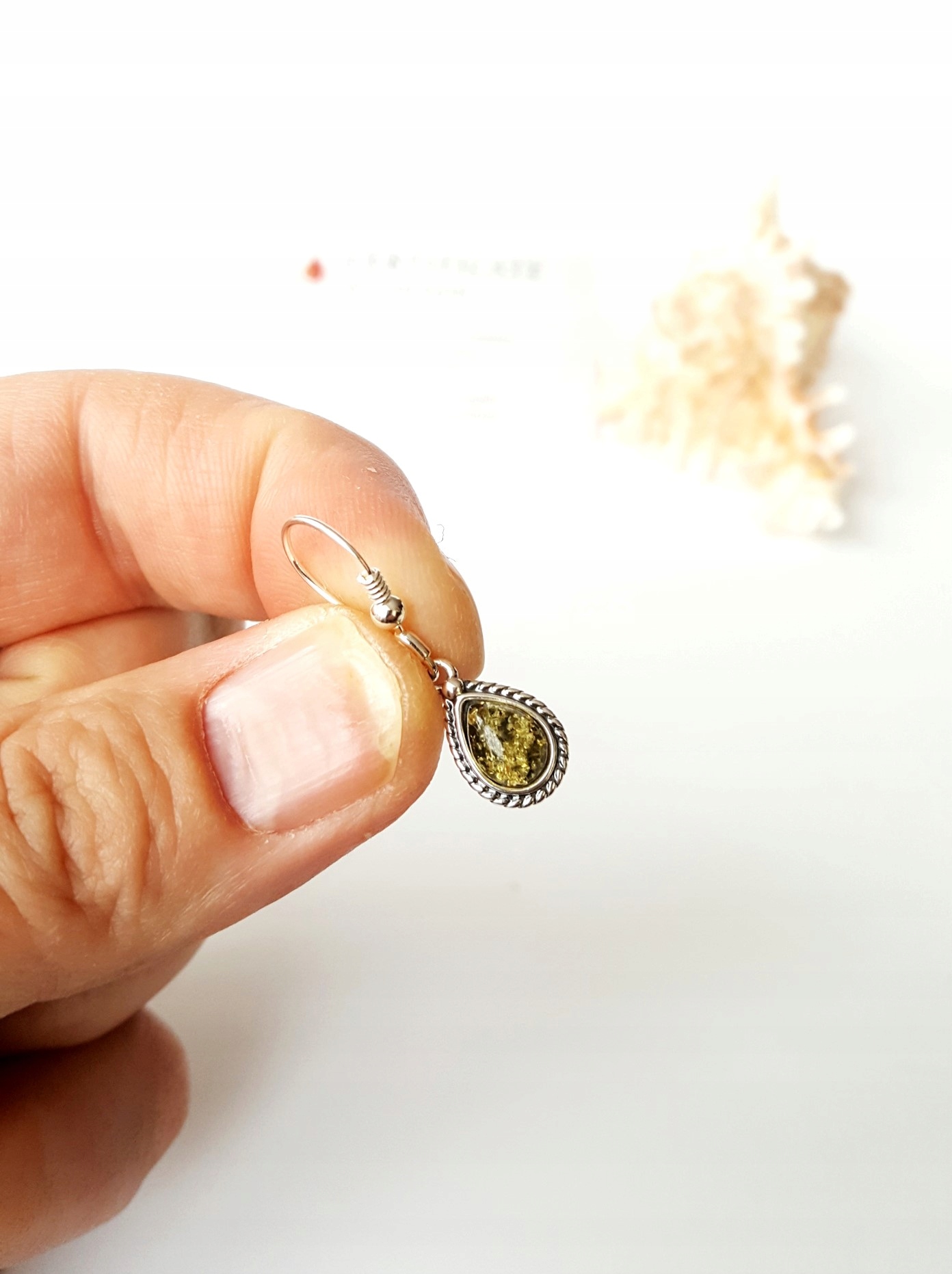 Prawdziwy BURSZTYN (zielony) SREBRO 925