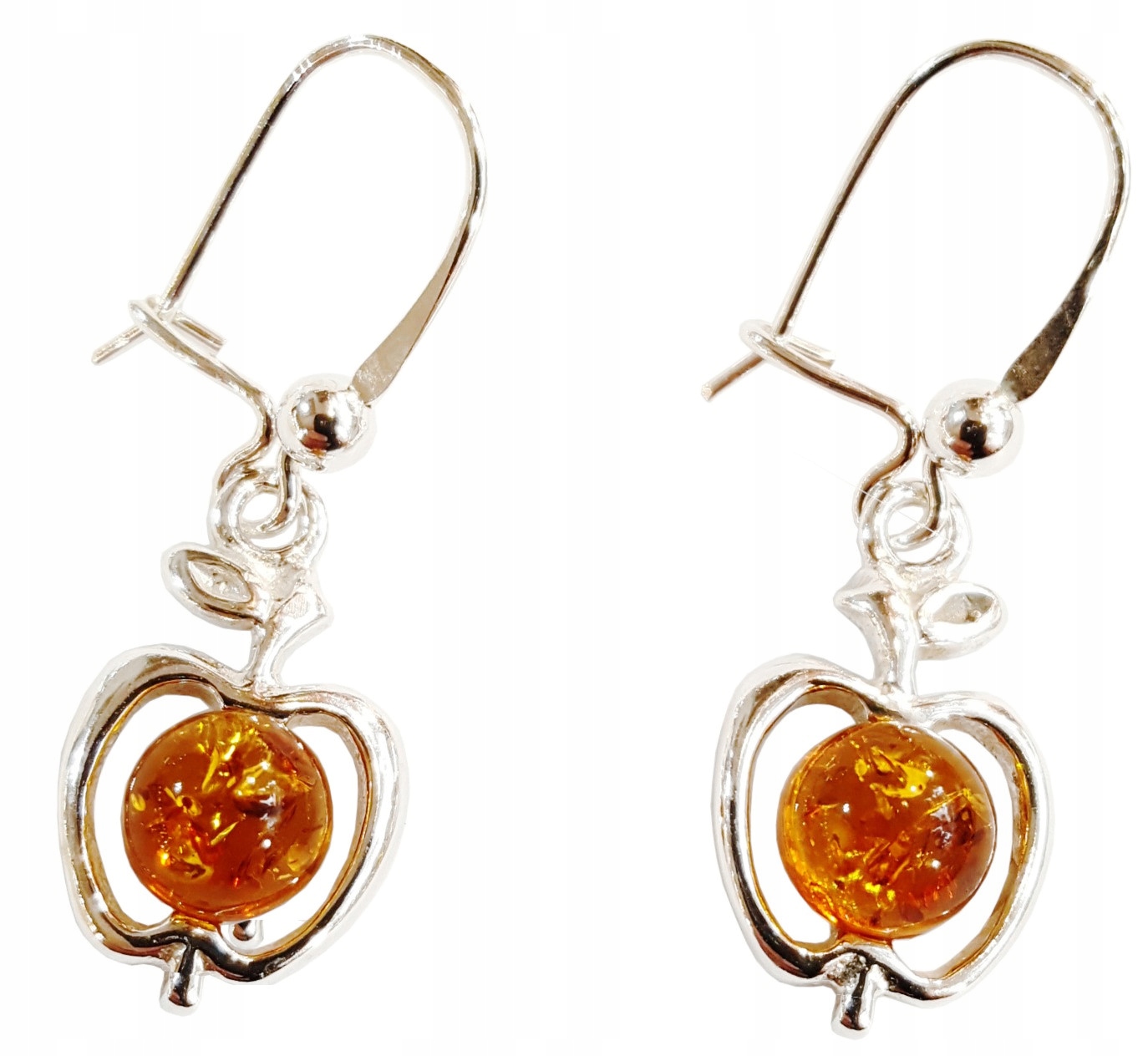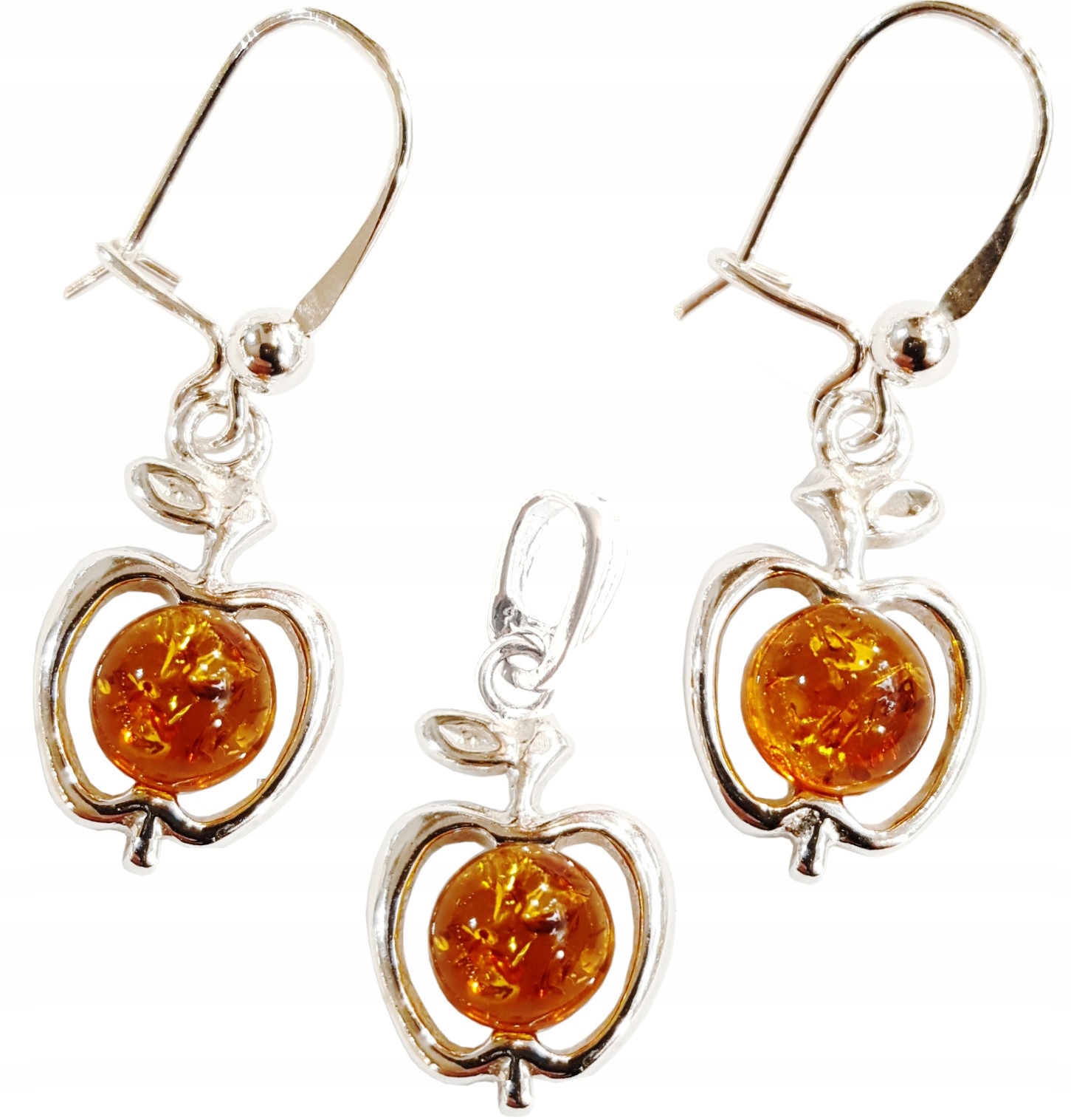KOMPLET srebrny z bursztynem – delikatne JABŁUSZKA