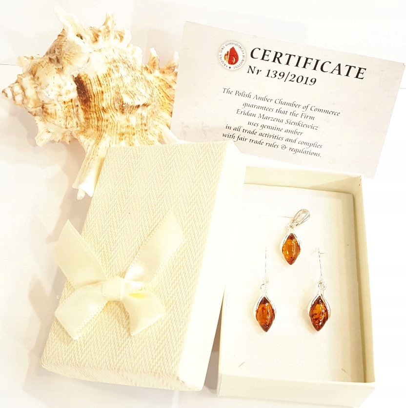 Kupując Nasz komplet srebrnych kolczyków i zawieszki z bursztynem możecie być Państwo pewni, że zostanie on zapakowany w bardzo ładne pudełko jubilerskie. Zupełnie za darmo. Pudełka wybieramy losowo, zawsze kierując się tym, aby idealnie pasowały do wybranego przez Państwa zestawu.